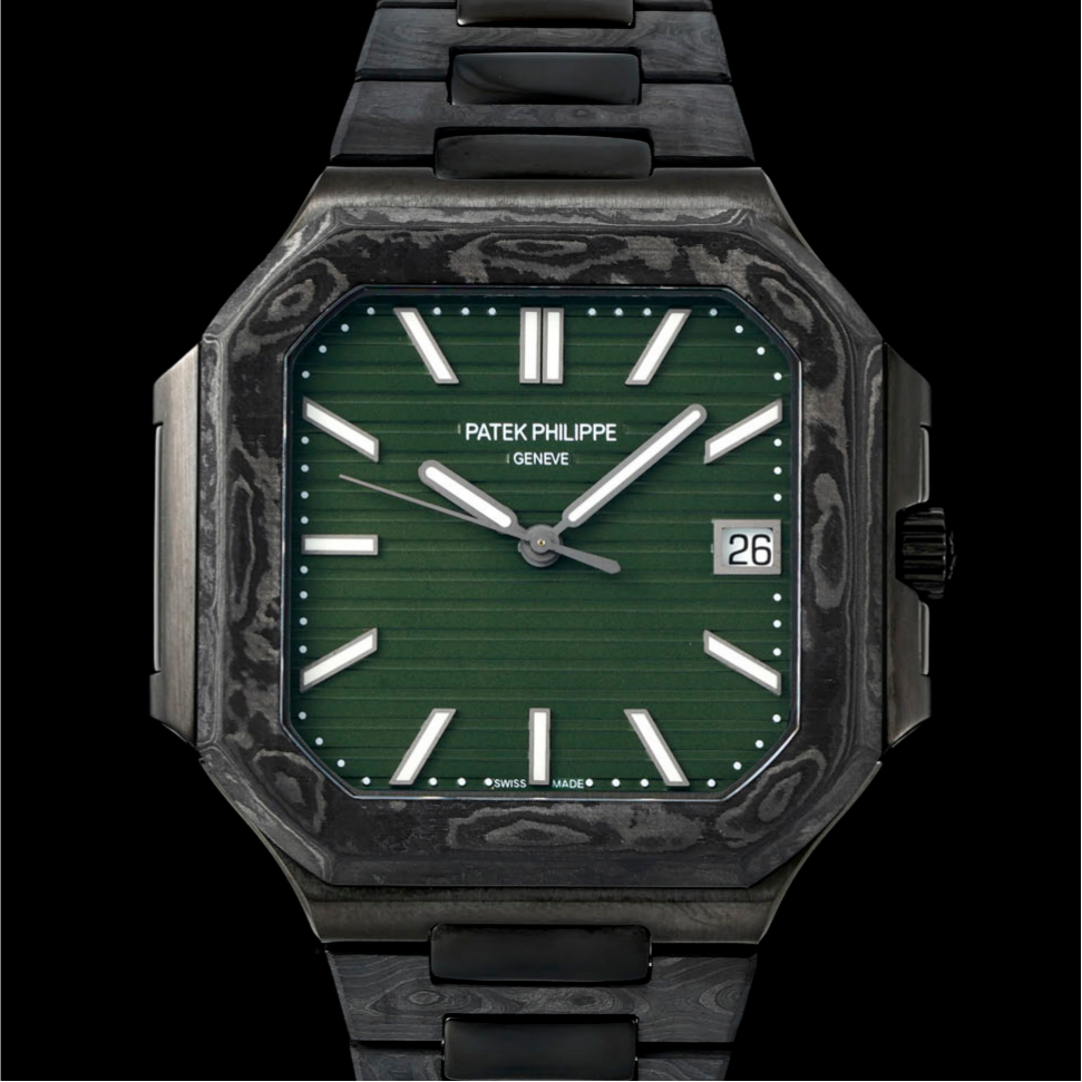 In the replica world, whenever someone mentions “carbon fiber,” many enthusiasts immediately think of DIW Factory. This niche custom workshop from Eastern Europe started out just doing lightweight case modifications for clients. But they blew up on social media after swapping Rolex Submariner and Daytona cases for carbon fiber ones. Now, they’ve set their sights on the latest 2025 Patek Philippe Cubitus 5821. They’ve completely transformed the original with their signature black carbon fiber weave and an olive green dial. If you’re looking for a watch that satisfies your desire for Patek Philippe design, lets you avoid the mainstream steel watch crowd, and is both lightweight for daily wear and visually striking, the DIW Factory Patek Philippe Cubitus 5821 Carbon Fiber version replica watch is pretty much a shortcut.
