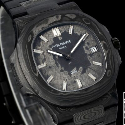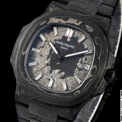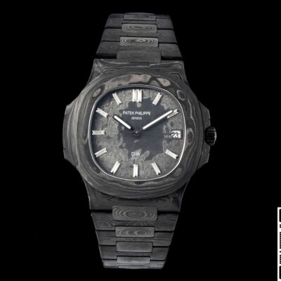 Today, I’ve got something from DIW Factory—the Patek Philippe Nautilus 5711. Honestly, I liked it the moment I saw it. It’s just really good-looking. The dial, the strap, and the case are all made of carbon fiber. The gray-black color is nice—low-key and classy, with a solid feel. The polished round octagonal bezel and the unique porthole-style case are classic Nautilus features. This DIW version is pretty popular among watch fans, so let’s see how it holds up.