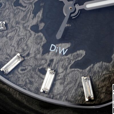 The first thing that grabs you is the dial. The watch is 40mm, which fits most people’s wrists just fine. The dial has this gray-black tone with wave-like patterns around it—really beautiful, like an ink-wash painting with its own vibe. The gray-black could feel dull, but those lines add a touch of mystery. I’m personally a fan. The layout is pretty simple. The white stick-shaped hour markers are smooth, no rough edges, neatly arranged and all the same size. The text under the 12 o’clock position is clean and well-printed—size, angle, everything looks right. At 6 o’clock, there’s the DIW logo. The hands have a solid center, which is a nice detail. The edges are clean, and the tips are rounded. The hour and minute hands are white but outlined in black carbon fiber—looks sharp. At 3 o’clock, there’s a date window with white background and black numbers. The font is centered and clear. Just from the outside, I’d say this replica watch is already a win.
