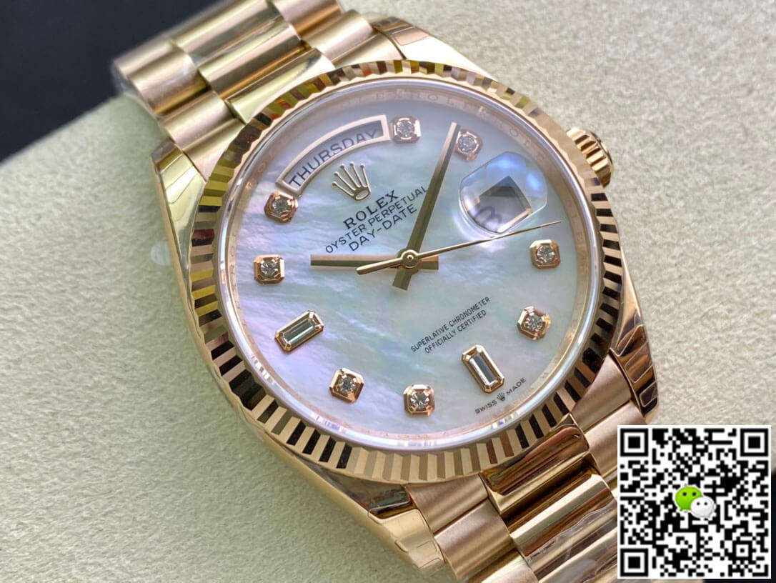 EW Factory Replica Rolex Day Date M128235-0029 White Mother-Of-Pearl Dial