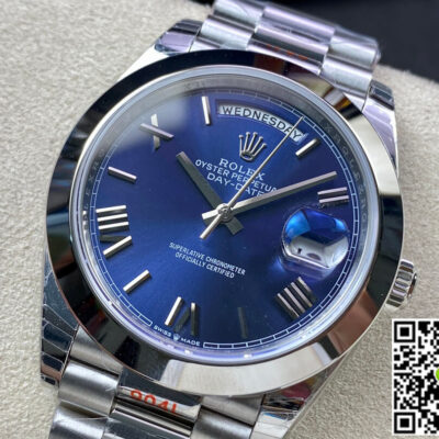 What is a replica watch? To put it simply, it is a watch made by replicating the various parts of the genuine watch according to 1:1 mold opening, that is, a replica watch. Its design, materials, and workmanship will strictly imitate the authentic manufacturing. This kind of watch has many advantages such as high simulation degree, fine workmanship and stable performance. Most replica watches can also achieve all the functions of the original watch, which is why many replica watches can be exported overseas. If you are looking to buy a high imitation watch, then this EW Factory Rolex Day Date M228206-0015 Blue Dial is a very good choice.