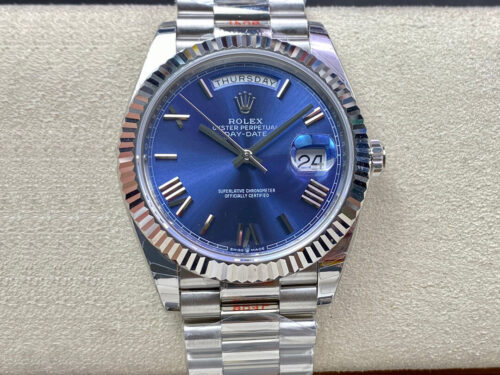What is a replica watch? To put it simply, it is a watch made by replicating the various parts of the genuine watch according to 1:1 mold opening, that is, a replica watch. Its design, materials, and workmanship will strictly imitate the authentic manufacturing. This kind of watch has many advantages such as high simulation degree, fine workmanship and stable performance. Most replica watches can also achieve all the functions of the original watch, which is why many replica watches can be exported overseas. If you are looking to buy a high imitation watch, then this EW Factory Rolex Day Date M228236-0007 Stainless Steel Strap is a very good choice.
