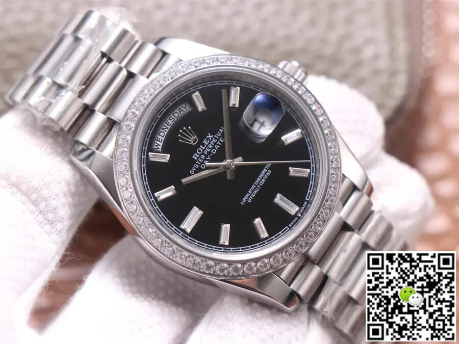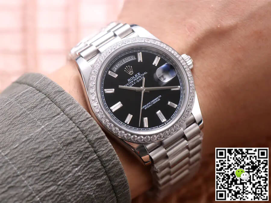 We sell the best EW Factory Replica Rolex Day Date M228349RBR-0003 Black Dial fake watches, this is EW Factory by purchasing original replica Rolex Day Date series watches. If you are interested in wholesale replica Rolex watches, you can contact our online customer service and give the lowest wholesale price according to the quantity you need.