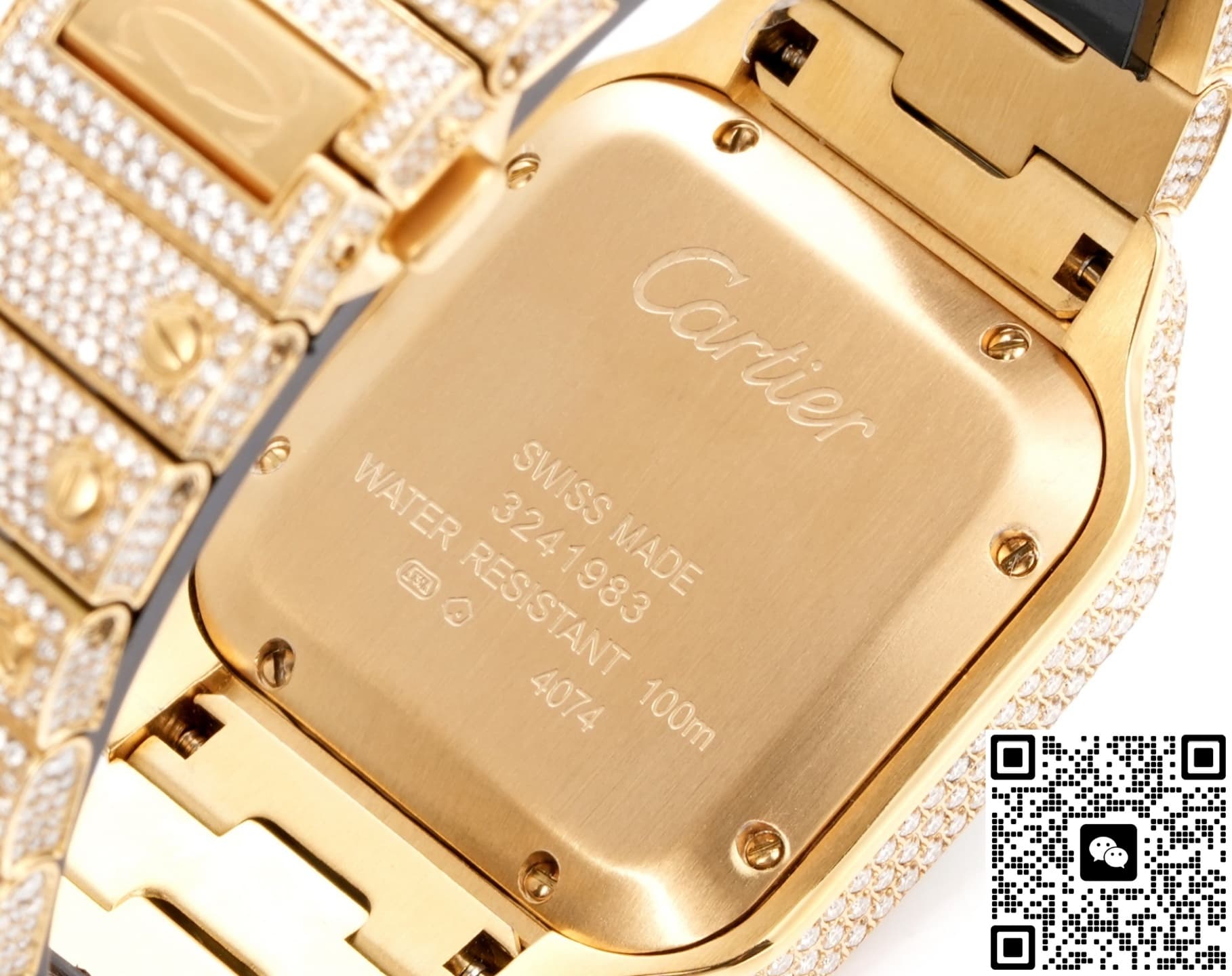 Moreover, in order to better serve customers, our mall implements low-cost operations, and all watches are priced at par, and will not raise prices to deceive customers. Finally, it is recommended to fully understand the quality and function of the watch before placing an order, and determine whether the style you like and whether the size and specification of the watch are suitable before purchasing to avoid unnecessary troubles. Because what you buy is not only this F4 Factory Replica Cartier Santos Diamond-set Dial For Sale – Replica Watch Wholesale, but also includes our complete pre-sale quality inspection, after-sale warranty and other services.