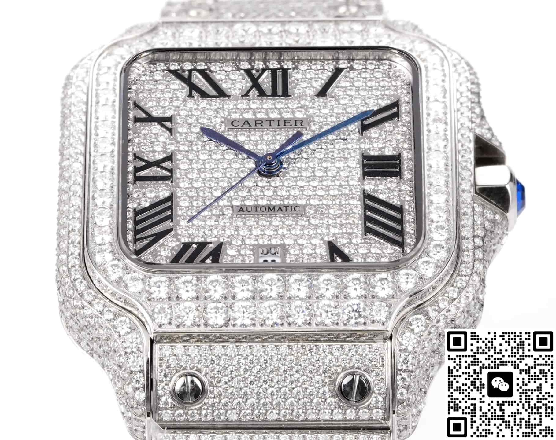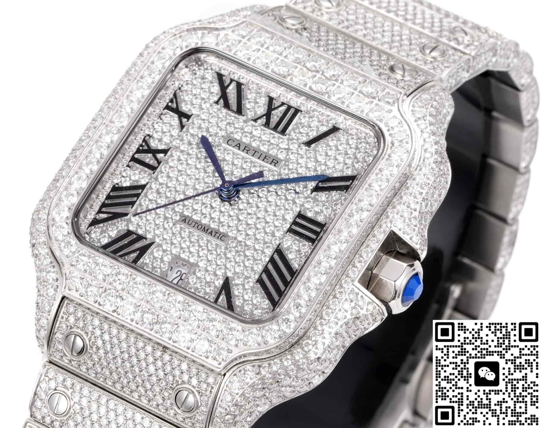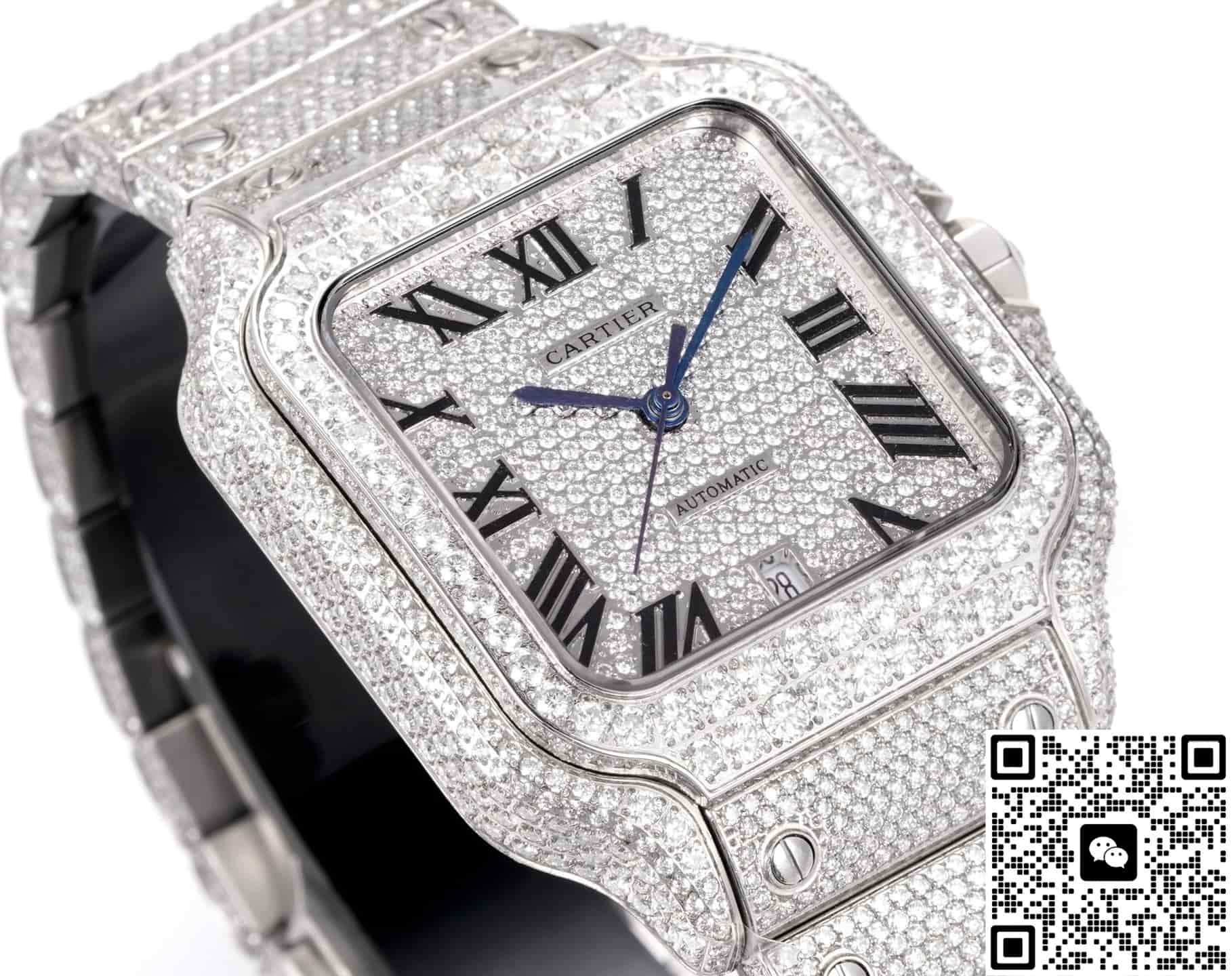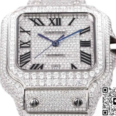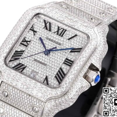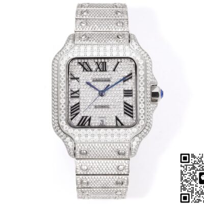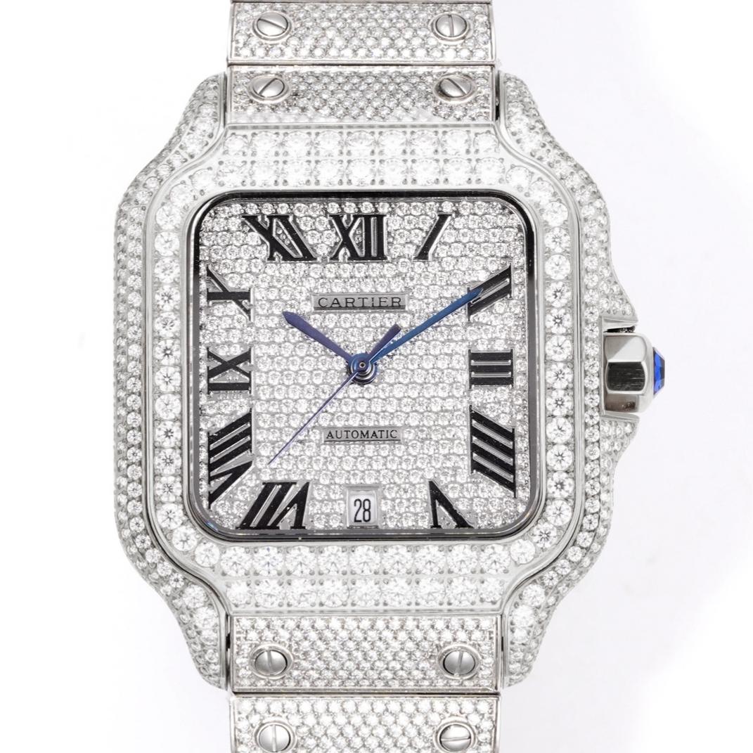 F4 Factory Cartier Santos Diamond-set Strap Replica watch For Sale, it is a watch made by replicating the various parts of the genuine watch according to 1:1 mold opening, that is, a replica watch. Its design, materials, and workmanship will strictly imitate the authentic manufacturing. This kind of watch has many advantages such as high simulation degree, fine workmanship and stable performance. Most replica watches can also achieve all the functions of the original watch, which is why many replica watches can be exported overseas. If you are looking to buy a high imitation watch, then this F4 Factory Replica Cartier Santos Diamond-set Strap is a very good choice.