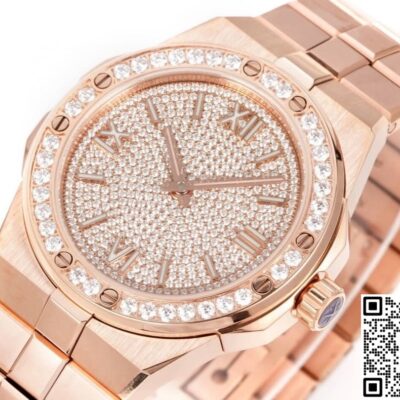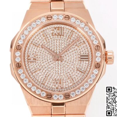- R8 factory Replica Patek Philippe Nautilus Jumbo 5711 Tourbillon full diamond watch has unique and full of charm design, and it is the sublimation work which presenting perfect workmanship, and it is a symbol of successful person. Patek Philippe Nautilus Jumbo 5711 Tourbillon is equipped with Swiss manual winding tourbillon movement that is durable and run time preciously and stablely. And diameter is 40mm and thickness is 11mm which is suitable for people who has different wrist size. This Patek Philippe Nautilus Jumbo 5711 Tourbillon use 18K yellow gold plated rhinestone, sapphire double-side crystal mirror, 50 meters depth waterproof, and superstrong nightlight. Patek Philippe Nautilus Jumbo 5711 Tourbillon adopt 316L stainless steel plating 18K yellow gold and inlaid rhinestone watch case, that is never fading.