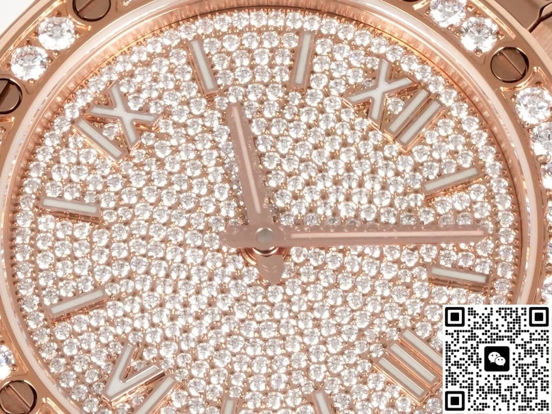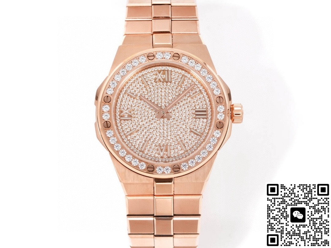 - R8 factory Replica Patek Philippe Nautilus Jumbo 5711 Tourbillon full diamond watch has unique and full of charm design, and it is the sublimation work which presenting perfect workmanship, and it is a symbol of successful person. Patek Philippe Nautilus Jumbo 5711 Tourbillon is equipped with Swiss manual winding tourbillon movement that is durable and run time preciously and stablely. And diameter is 40mm and thickness is 11mm which is suitable for people who has different wrist size. This Patek Philippe Nautilus Jumbo 5711 Tourbillon use 18K yellow gold plated rhinestone, sapphire double-side crystal mirror, 50 meters depth waterproof, and superstrong nightlight. Patek Philippe Nautilus Jumbo 5711 Tourbillon adopt 316L stainless steel plating 18K yellow gold and inlaid rhinestone watch case, that is never fading.