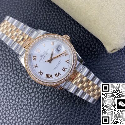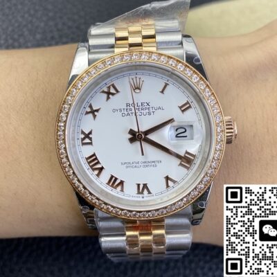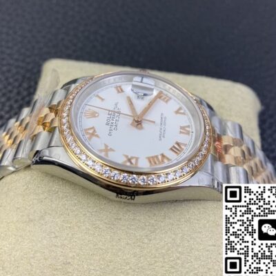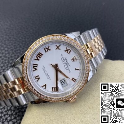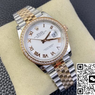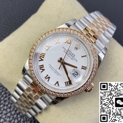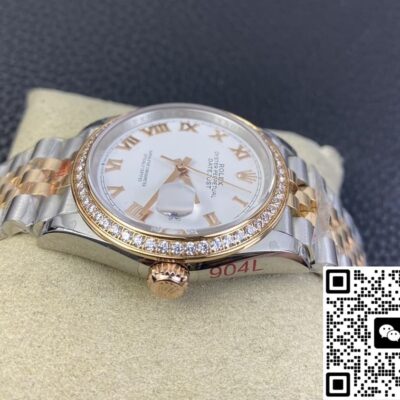 The first time I got my hands on this Rolex from GM Factory, I was totally drawn to it. Whether it’s the look, the details, or how well it works, this replica watch feels really high-quality. Compared to other Rolex Datejust watches for women, I really love this white dial. Those shiny mother-of-pearl ones or the flashy gold dials—they just don’t beat this simple and classy white version. The whole watch is made from 904L stainless steel, with a two-tone bracelet paired with this soft, cloud-like white dial. It’s clean and understated but still has that luxury vibe—they really complement each other and make the watch feel extra stylish. The bezel is rose gold, and what’s really nice is it’s set with little diamonds. Sure, the cut and clarity aren’t exactly like the original, but honestly, I’m pretty happy with it. The hour markers are also rose gold, so the whole watch has this comfortable, unified color tone. The carefully polished Roman numerals and the classic crown logo reflect light in different ways, giving off a really beautiful, subtle shine.