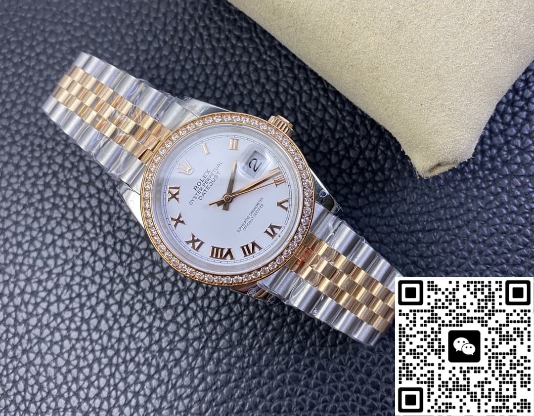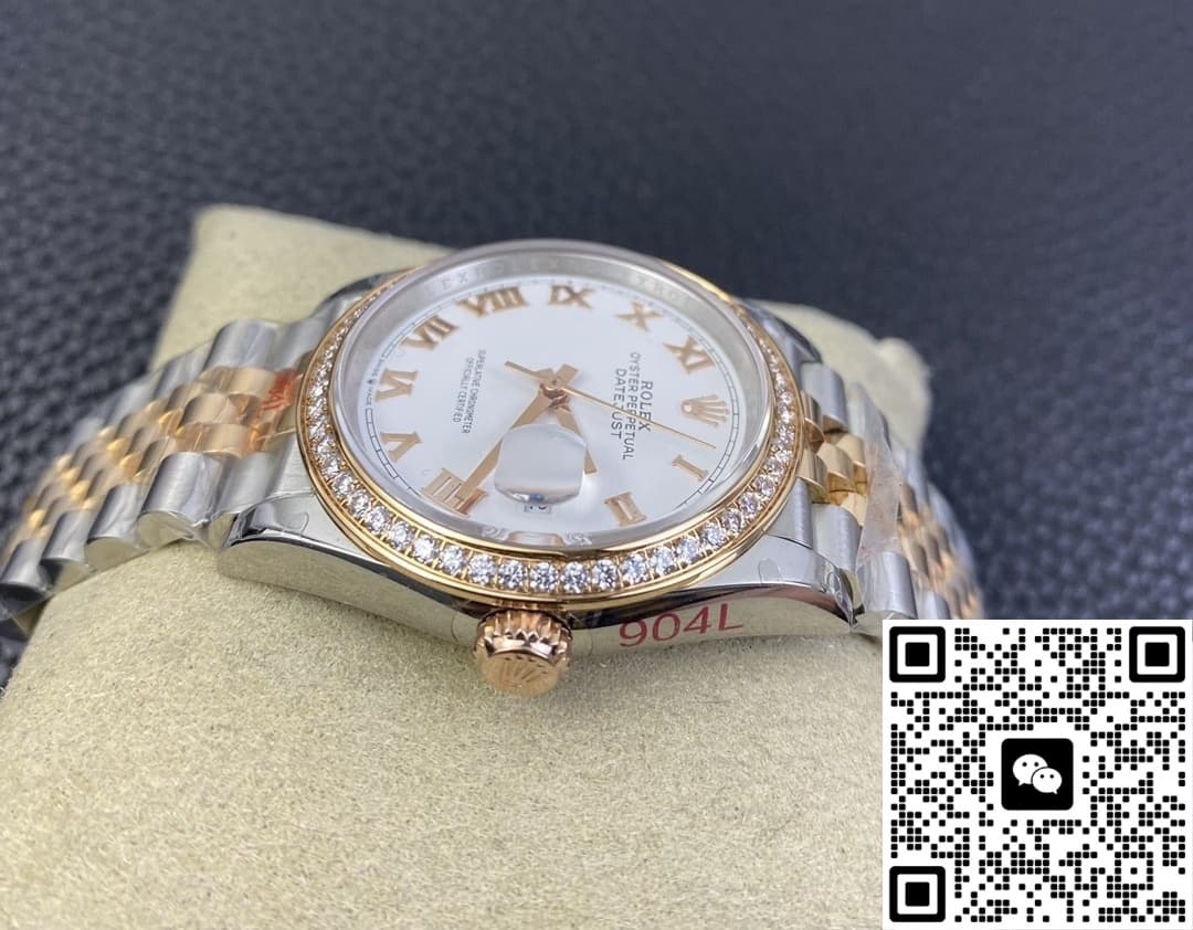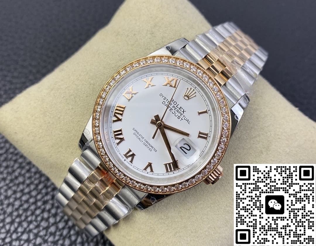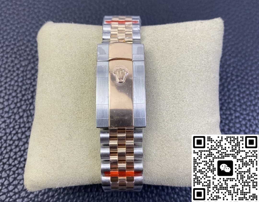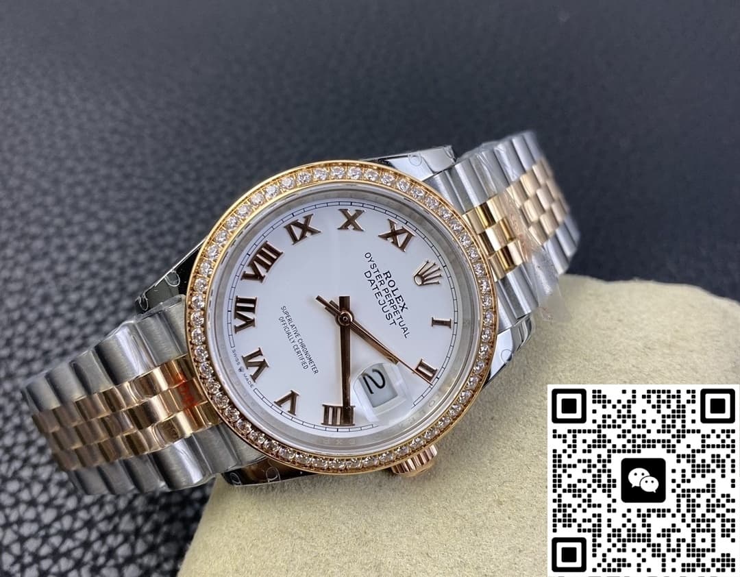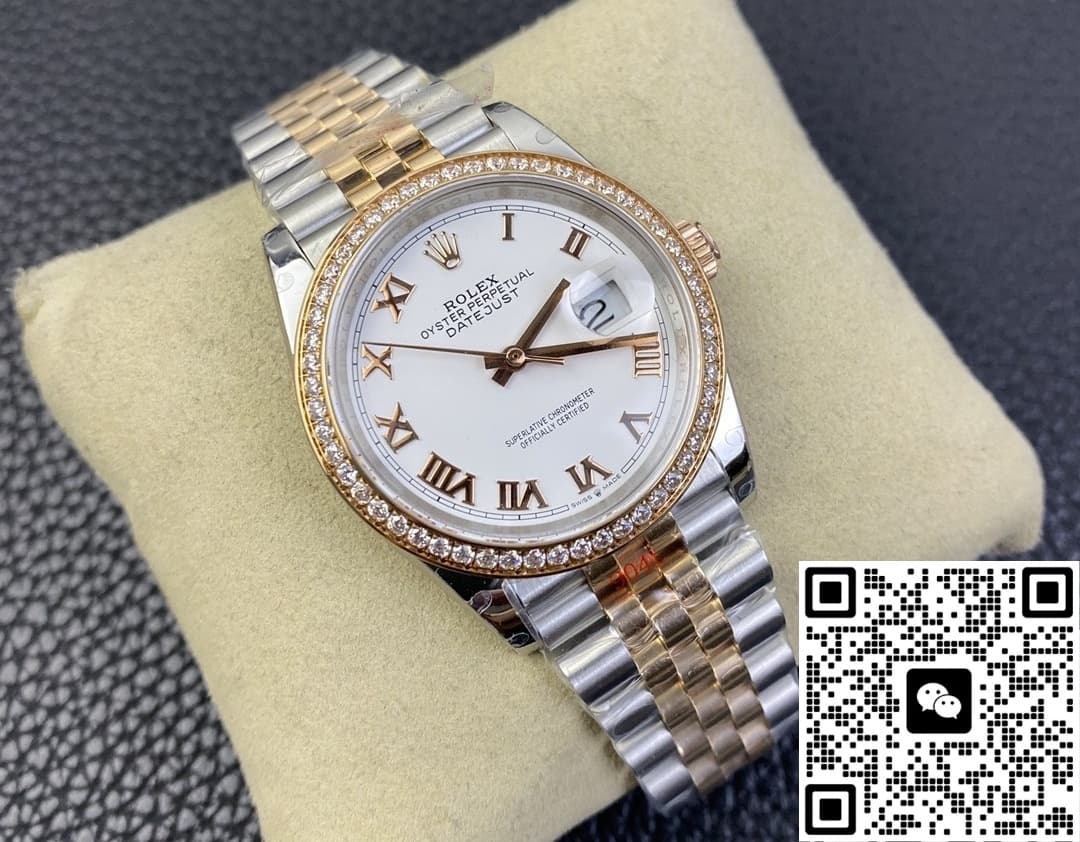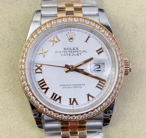 The first time I got my hands on this Rolex from GM Factory, I was totally drawn to it. Whether it’s the look, the details, or how well it works, this replica watch feels really high-quality. Compared to other Rolex Datejust watches for women, I really love this white dial. Those shiny mother-of-pearl ones or the flashy gold dials—they just don’t beat this simple and classy white version. The whole watch is made from 904L stainless steel, with a two-tone bracelet paired with this soft, cloud-like white dial. It’s clean and understated but still has that luxury vibe—they really complement each other and make the watch feel extra stylish. The bezel is rose gold, and what’s really nice is it’s set with little diamonds. Sure, the cut and clarity aren’t exactly like the original, but honestly, I’m pretty happy with it. The hour markers are also rose gold, so the whole watch has this comfortable, unified color tone. The carefully polished Roman numerals and the classic crown logo reflect light in different ways, giving off a really beautiful, subtle shine.