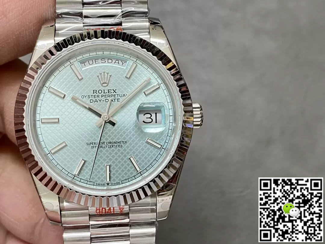 Best GM Factory Replica Rolex Day Date M228236 Stainless Steel For Sale – Replica Watch Wholesale.The ice blue dial is unique to Rolex platinum watches. Rolex uses the precious metal platinum to create exceptional timepieces. Platinum is very soft, elastic and extremely ductile, which makes the processing and polishing process particularly difficult. It has good waterproof performance and uses Swiss ETA2836 movement, which can only be operated by highly skilled personnel.