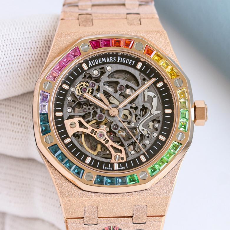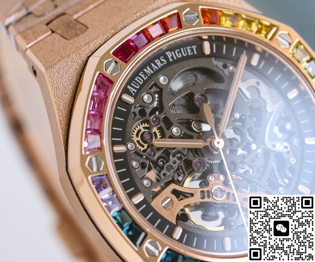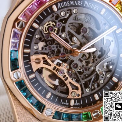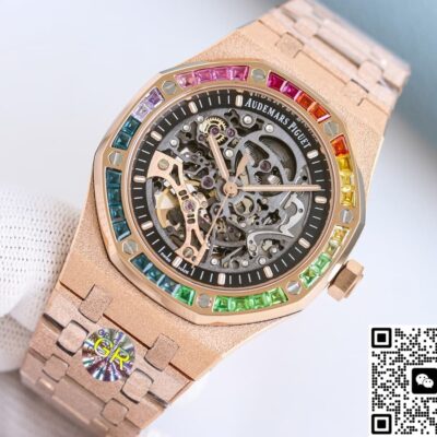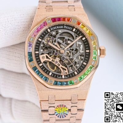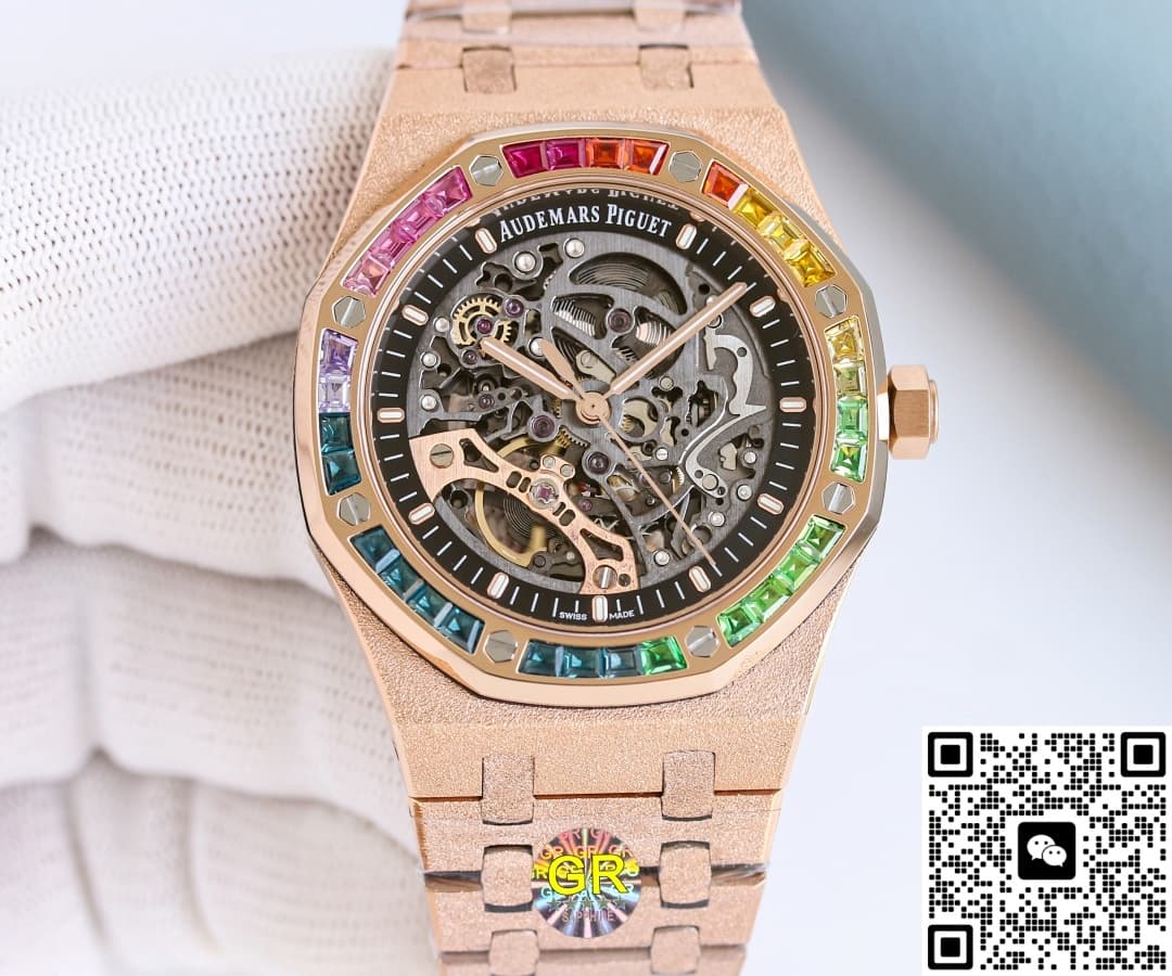 The hot topic from GR Factory this year is the replica watch of the Audemars Piguet Royal Oak 15412OR.YG.1224OR.01. It combines three elements that best represent AP’s bold style—the rainbow bezel, frosted gold case, and skeleton movement—all in one piece. With a price tag of less than 10% of the original, it quickly went viral in replica forums.