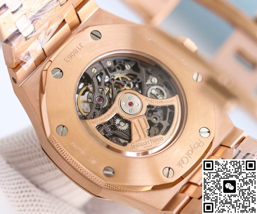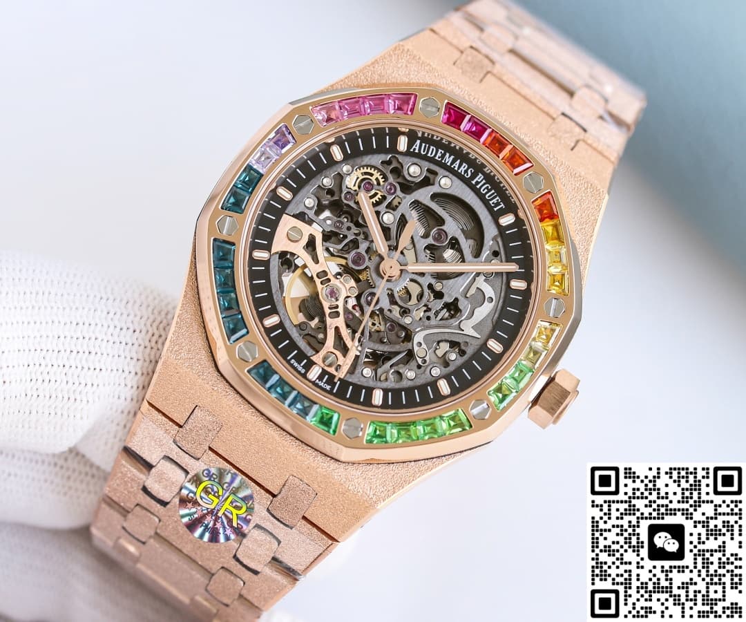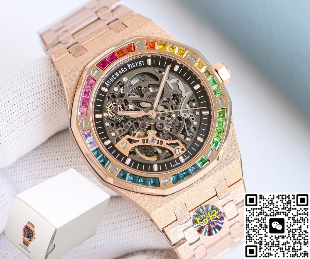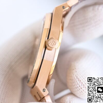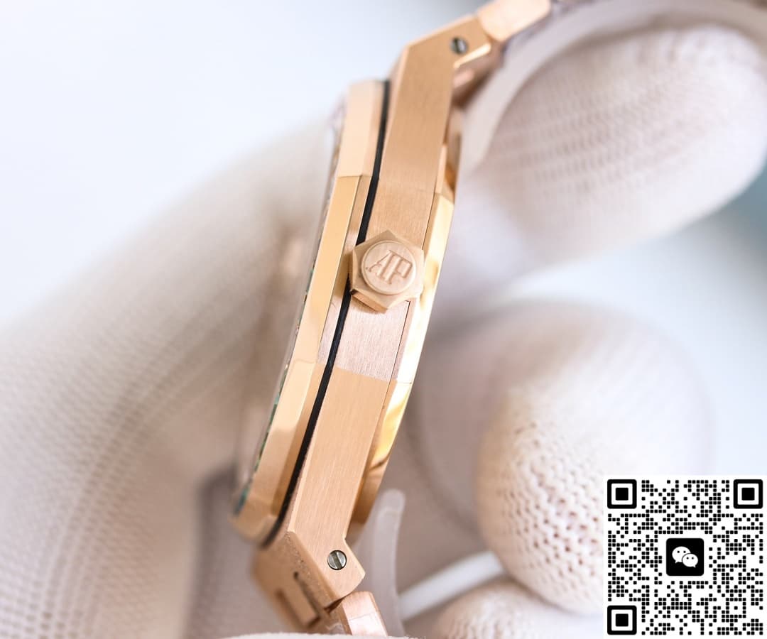 Wearing comfort is an unexpected plus. The 316L steel with plating keeps the whole watch under 100 grams—40% lighter than the original 18K gold version. You can wear it all day in summer without it digging into your wrist. The clasp has three micro-adjustment positions that you can change without tools, giving about 5mm of play—perfect for when your wrist swells after a workout. For those who love water sports, there’s nothing to worry about. With 50 meters of water resistance and a screw-down crown, you can swim or surf with it on. The rainbow bezel shines even brighter in sparkling water, boosting its social appeal instantly. If you’re concerned about the plating reacting to sweat, GR Factory Audemars Piguet Royal Oak 15412OR.YG.1224OR.01 replica watch has a solution: after electroplating, they add a nano-ceramic seal. You can wear it at the beach for months without seeing oxidation or dark spots.