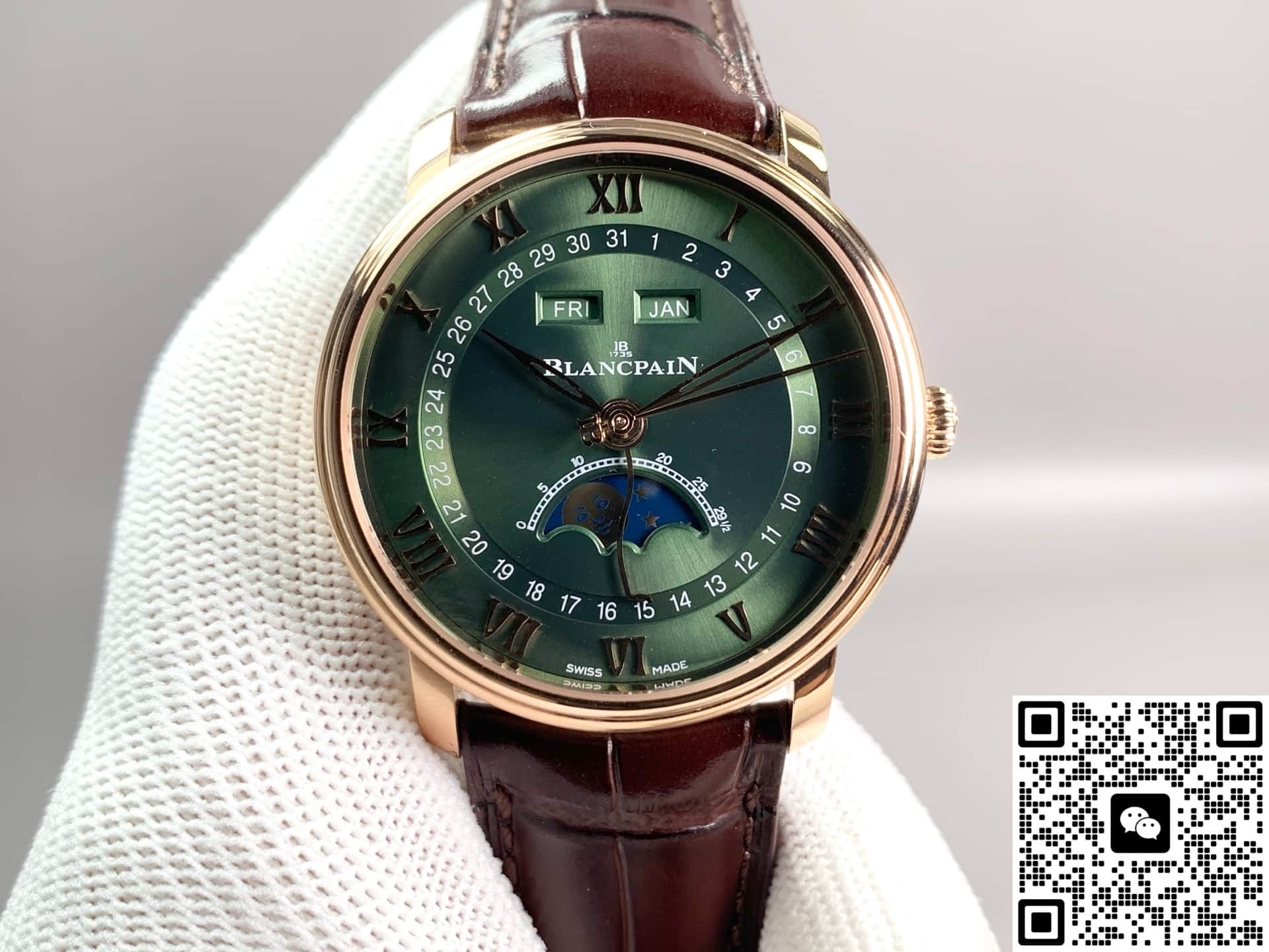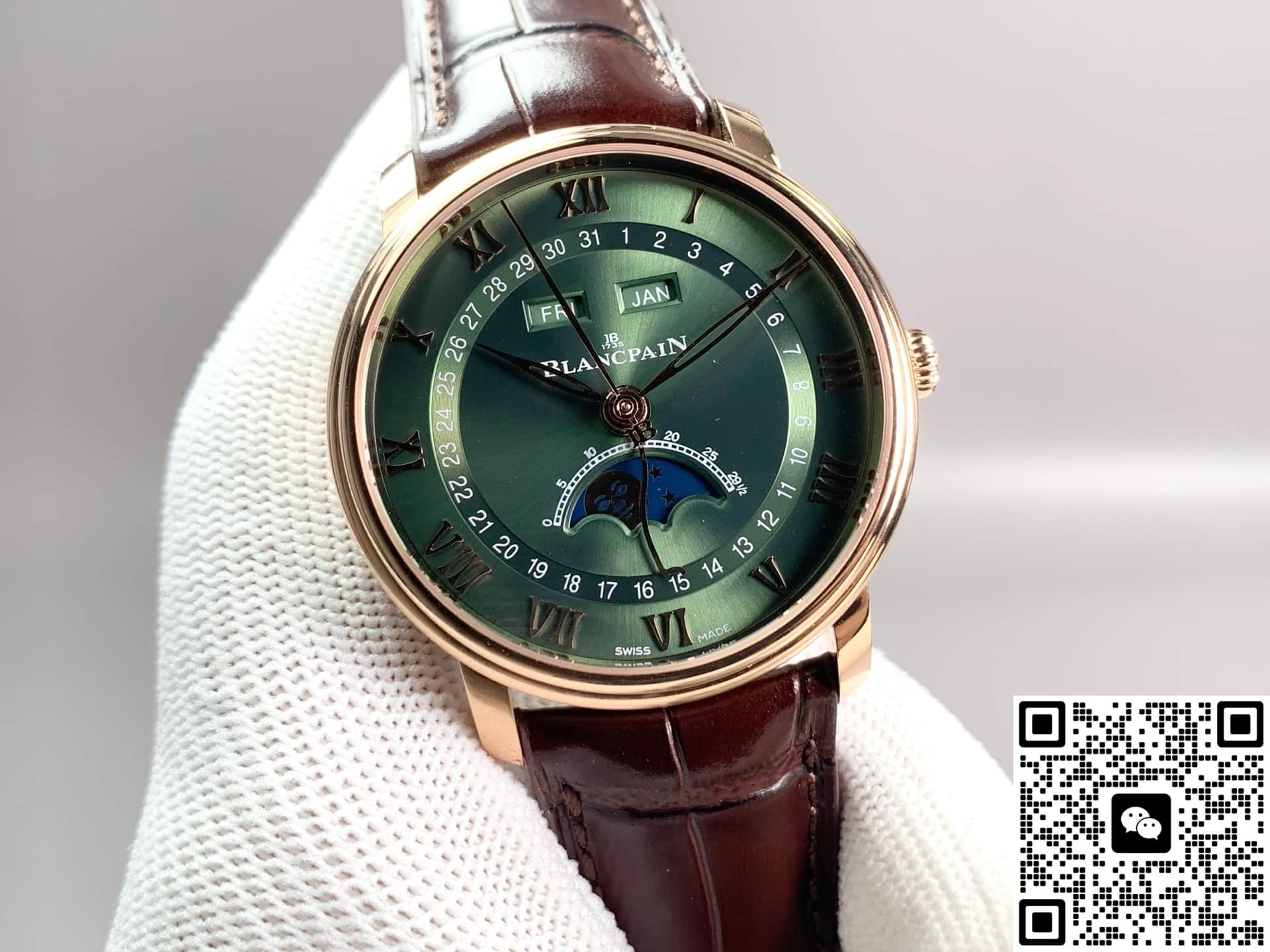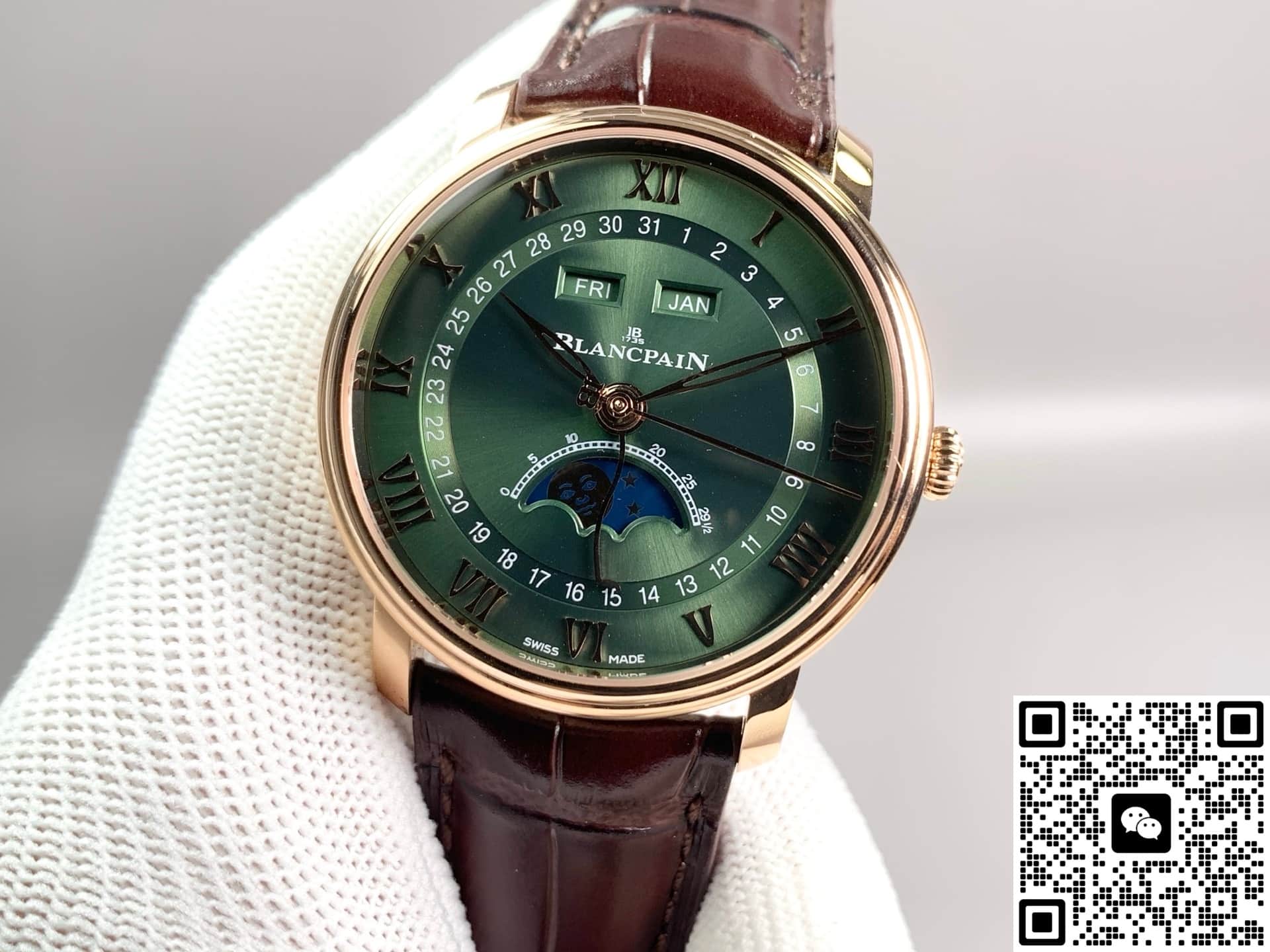 GR Factory Blancpain Villeret 6654A-3653-55B Replica watch For Sale, it is a watch made by replicating the various parts of the genuine watch according to 1:1 mold opening, that is, a replica watch. Its design, materials, and workmanship will strictly imitate the authentic manufacturing. This kind of watch has many advantages such as high simulation degree, fine workmanship and stable performance. Most replica watches can also achieve all the functions of the original watch, which is why many replica watches can be exported overseas. If you are looking to buy a high imitation watch, then this GR Factory Replica Blancpain Villeret 6654A-3653-55B is a very good choice.