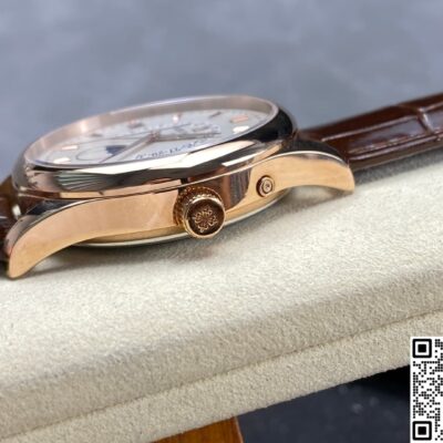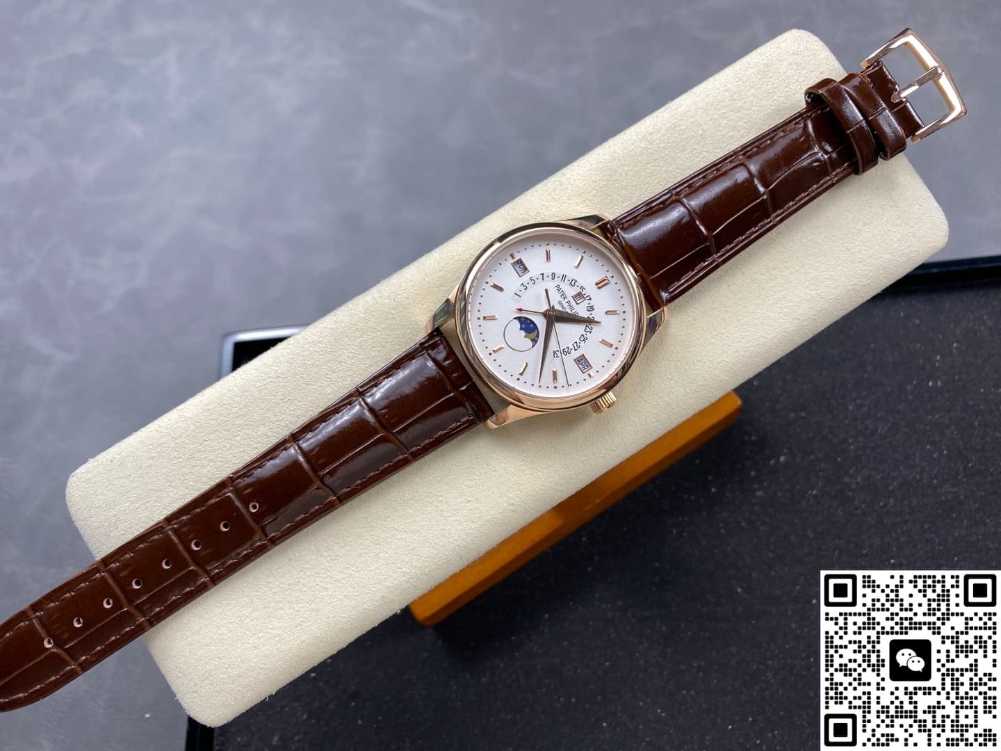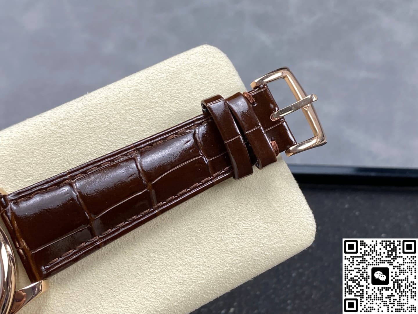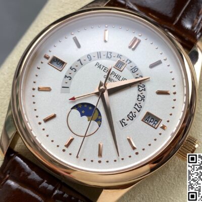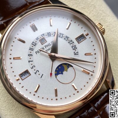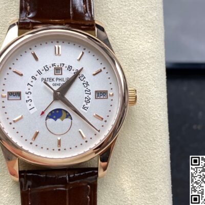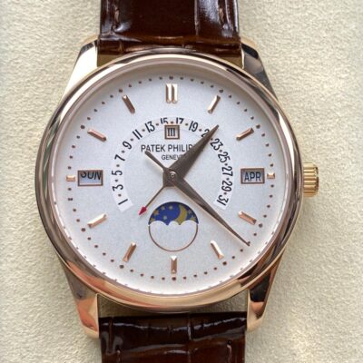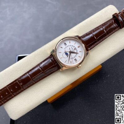 If a watch has annual calendar display, month display, date display, moon phase, and other complicated functions all at once, you’d probably think it looks messy. But this top-grade cloned version from GR Factory arranges everything exactly 1:1 like the genuine piece. There’s a month window at 12 o’clock, a calendar window at 3 o’clock, a moon phase disc and 24-hour indicator at 6 o’clock, and a weekday window at 9 o’clock. At first glance, it looks very tidy, not messy at all. Wearing it to formal occasions won’t feel out of place either.