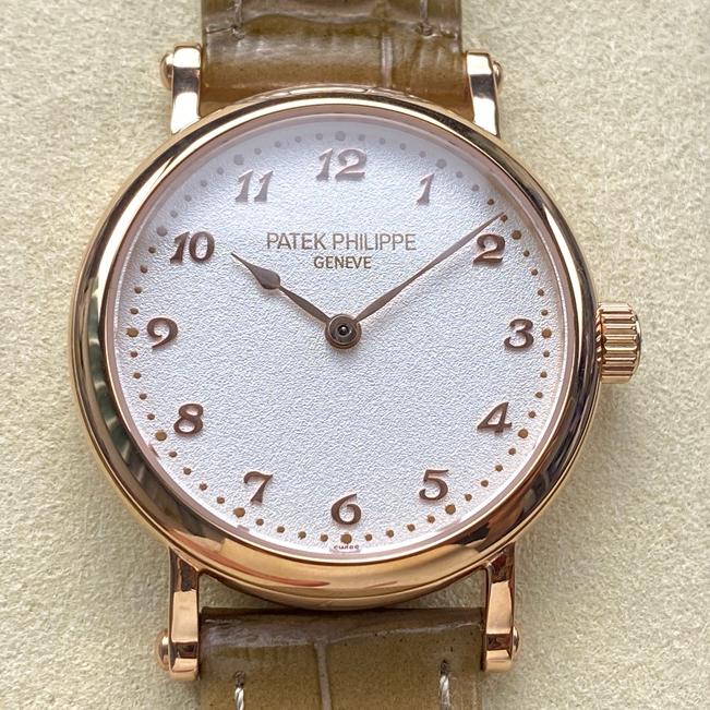 You can sum up Patek Philippe’s Classic series in one sentence: super simple design, and feels incredibly light. Today, I’m gonna talk about this top-tier clone version from GS Factory. I got it the second day after its release, and man, the workmanship, the details, the overall feel… it’s just awesome! Everything – the dial, the case, the strap – shows off Patek Philippe’s high-level skill. It looks great whether you’re dressing up for work or just keeping it casual. Plus, this is one of the two most classic women’s watches from Patek Philippe back in 2013. Because of its simple style and perfect design, it’s even more attractive than a lot of those complicated or super-complicated watches. If I had to describe it, “the unbearable lightness” fits it perfectly. When I first got this GS Factory Patek, it just felt high-quality. The 34.6mm creamy white dial looks simple and classy. It’s rose gold plated, only has hour and minute hands, very clean. Let’s check out different aspects and see how good this GS Factory Patek replica watch really is.