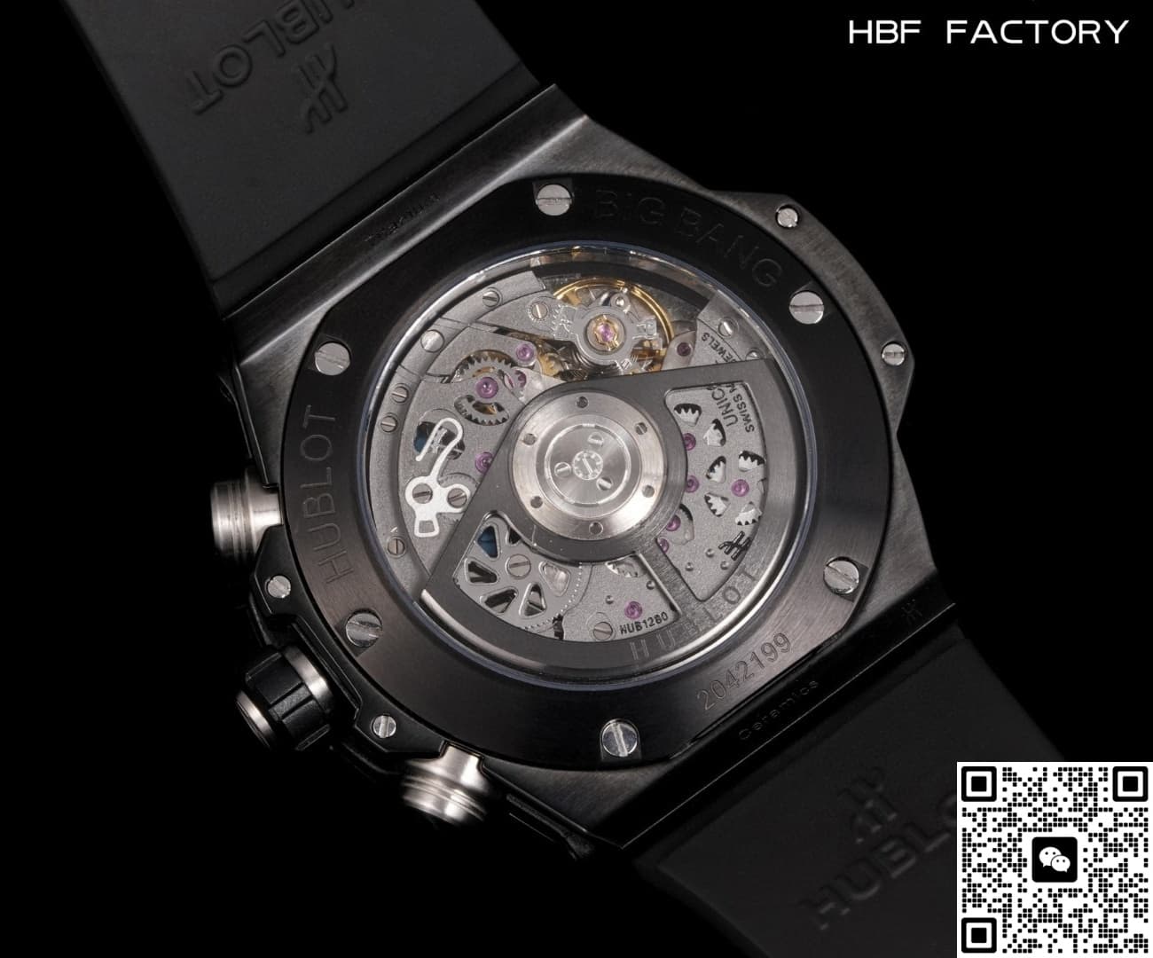 - Movement Swiss ETA7750 automatic chronograph movement decorated to Hublot HUB1242 movement