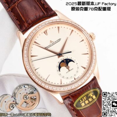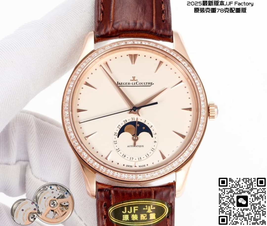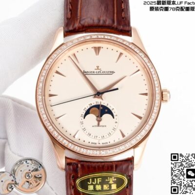 JJF Factory Jaeger LeCoultre Master 1362501 Lunar Phase Replica watch For Sale, it is a watch made by replicating the various parts of the genuine watch according to 1:1 mold opening, that is, a replica watch. Its design, materials, and workmanship will strictly imitate the authentic manufacturing. This kind of watch has many advantages such as high simulation degree, fine workmanship and stable performance. Most replica watches can also achieve all the functions of the original watch, which is why many replica watches can be exported overseas. If you are looking to buy a high imitation watch, then this JJF Factory Replica Jaeger LeCoultre Master 1362501 Lunar Phase is a very good choice.