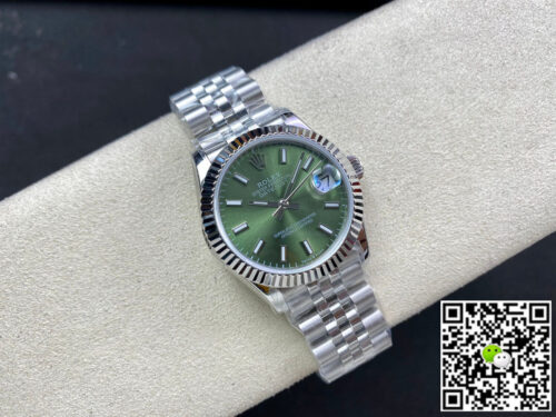 What is a replica watch? To put it simply, it is a watch made by replicating the various parts of the genuine watch according to 1:1 mold opening, that is, a replica watch. Its design, materials, and workmanship will strictly imitate the authentic manufacturing. This kind of watch has many advantages such as high simulation degree, fine workmanship and stable performance. Most replica watches can also achieve all the functions of the original watch, which is why many replica watches can be exported overseas. If you are looking to buy a high imitation watch, then this EW Factory Rolex Datejust M278274-0018 31MM Green Dial is a very good choice.