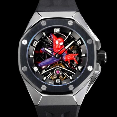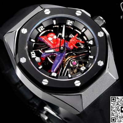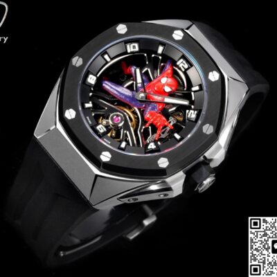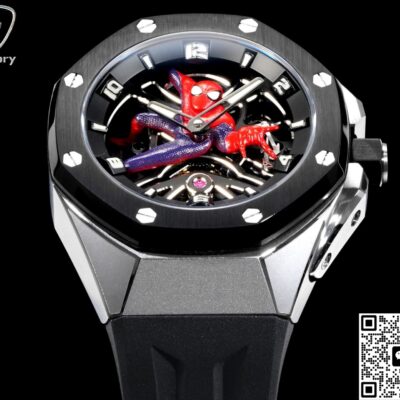 Today, let’s talk about this LS Factory Audemars Piguet Royal Oak 26631IO.OO.D002CA.01 replica watch. I guess every guy dreamed of being a hero like Spider-Man when he was a kid—you know, climbing walls and saving the day. This Royal Oak with its skeleton Spider-Man dial really brings back that childhood hero fantasy. The openworked dial looks super mechanical and techy, and the titanium case is light and feels premium. Wearing this watch just makes you stand out—it’s full of personality and definitely catches people’s eyes on the street. After comparing it carefully with the genuine version, I found the look is really close, details are well done, and you can tell LS Factory put a lot of effort into it.