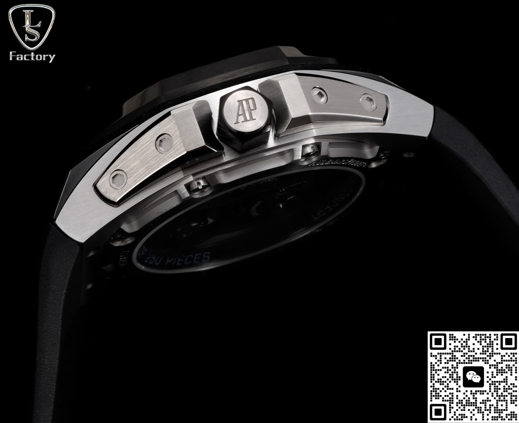 Based on real inspection, the case of this LS Factory Royal Oak uses the same titanium as the genuine version, so it keeps that unique feel. Titanium is really light—about 40% lighter than stainless steel. Even with a larger case, it doesn’t feel heavy on the wrist. It has this semi-matte silver-gray tone that looks quietly premium, and it won’t fade easily. But it’s not as hard as steel, so it can scratch more easily. Just be careful with sharp objects in daily wear.