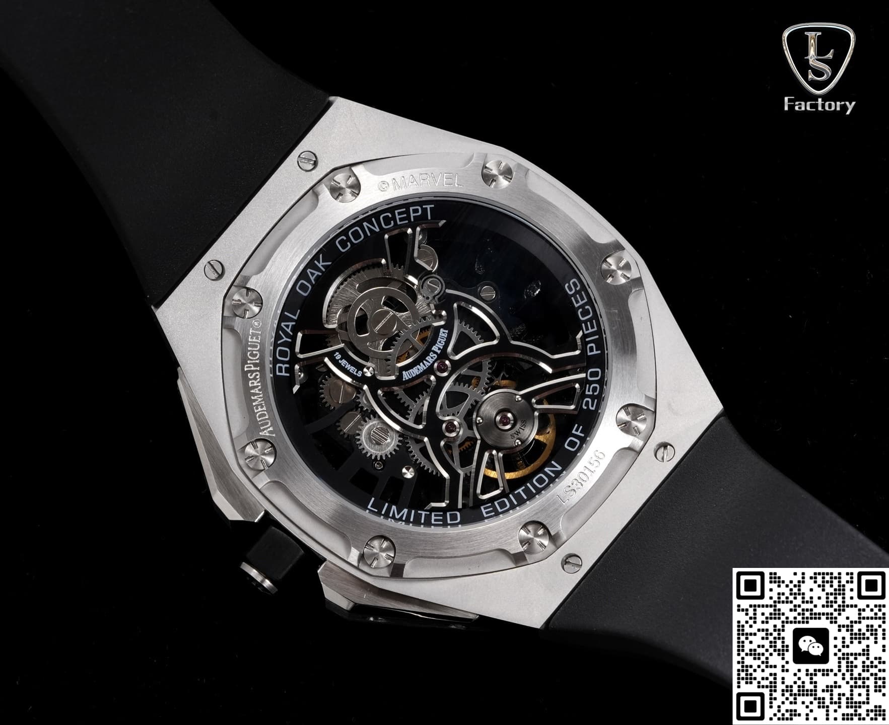 LS Factory Audemars Piguet Royal Oak Concept Tourbillon 26632CN.OO.D100CA.01 Replica watch For Sale, it is a watch made by replicating the various parts of the genuine watch according to 1:1 mold opening, that is, a replica watch. Its design, materials, and workmanship will strictly imitate the authentic manufacturing. This kind of watch has many advantages such as high simulation degree, fine workmanship and stable performance. Most replica watches can also achieve all the functions of the original watch, which is why many replica watches can be exported overseas. If you are looking to buy a high imitation watch, then this LS Factory Replica Audemars Piguet Royal Oak Concept Tourbillon 26632CN.OO.D100CA.01 is a very good choice.