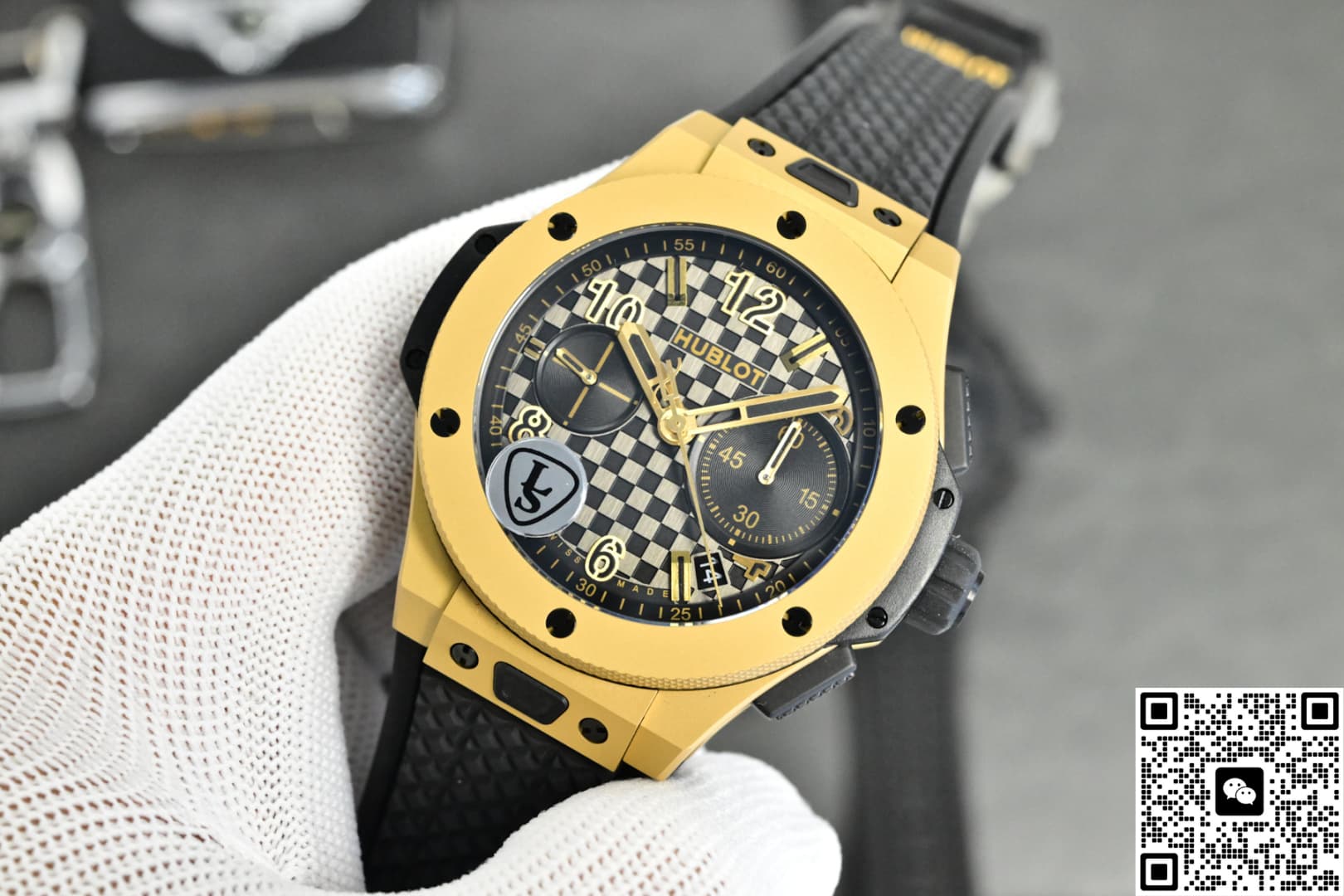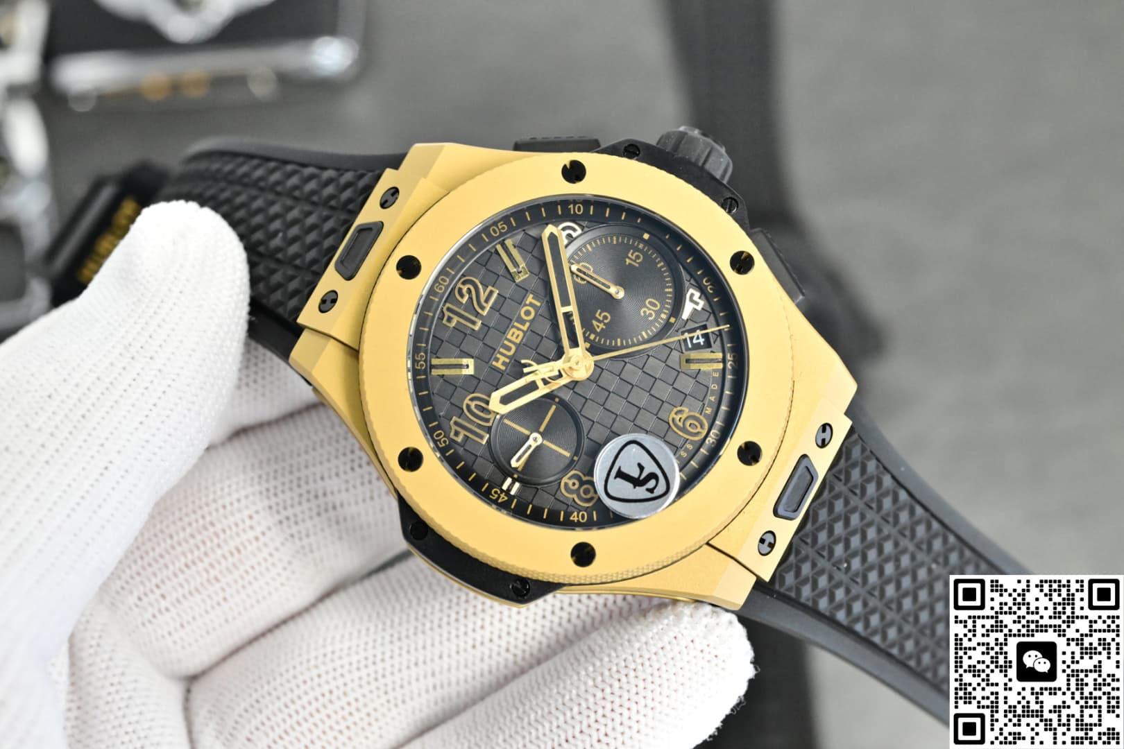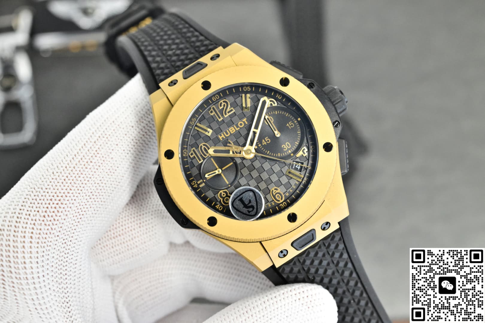 If you want a watch that shows your personal style, this LS factory Hublot BIG BANG 431.MX.1330.RX replica watch is a great choice. The black and gray square pattern on the dial looks like a chessboard, giving a strong 3D effect and real visual impact. Wearing it on your wrist is eye-catching and sure to get you noticed during your daily commute. The chessboard pattern itself looks very cool, and the gold-plated bezel not only makes the watch instantly look more luxurious but also ups its overall refinement. The design of this watch really left a deep impression on me. Now, let’s check out its other great features!