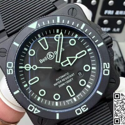 Square case, round dial – if you know watches, you instantly recognize it. Yep, it’s a Bell & Ross. That mix of sharp square and soft circle creates a strong contrast, which is Bell & Ross’s most iconic feature. This piece from M+ Factory is a replica watch of the Bell & Ross INSTRUMENTS BR03A-D-OL-CE/SRB, a new model launched in June 2025. Bell & Ross draws inspiration from aircraft cockpit instruments. That’s why their watches always mix in different flying elements. This one’s a luminescent dive watch. The overall color is black. But the hour markers and hands are outlined with green glow. It gives life to what could be a dull black, making the watch stand out. Personally, I really like this watch. It’s not that famous, but I’m into its design concept. It gives me a free and easy vibe. Let’s see how M+ Factory’s version holds up.