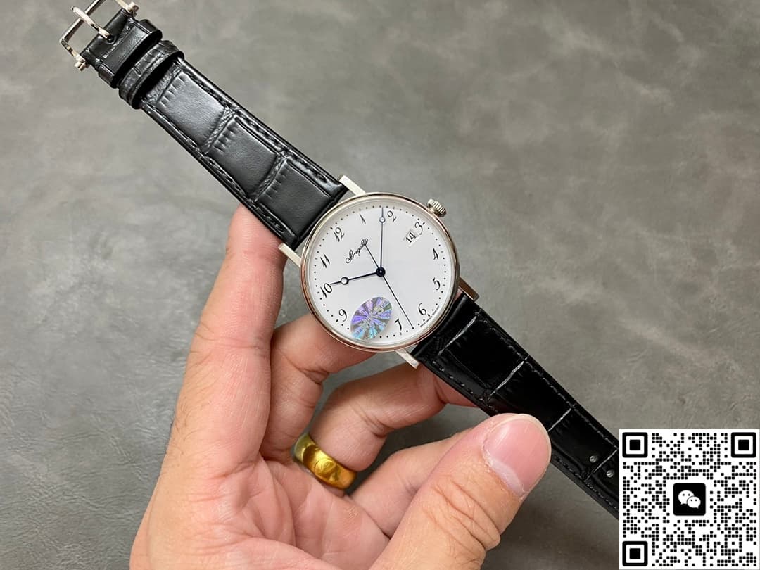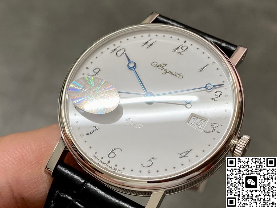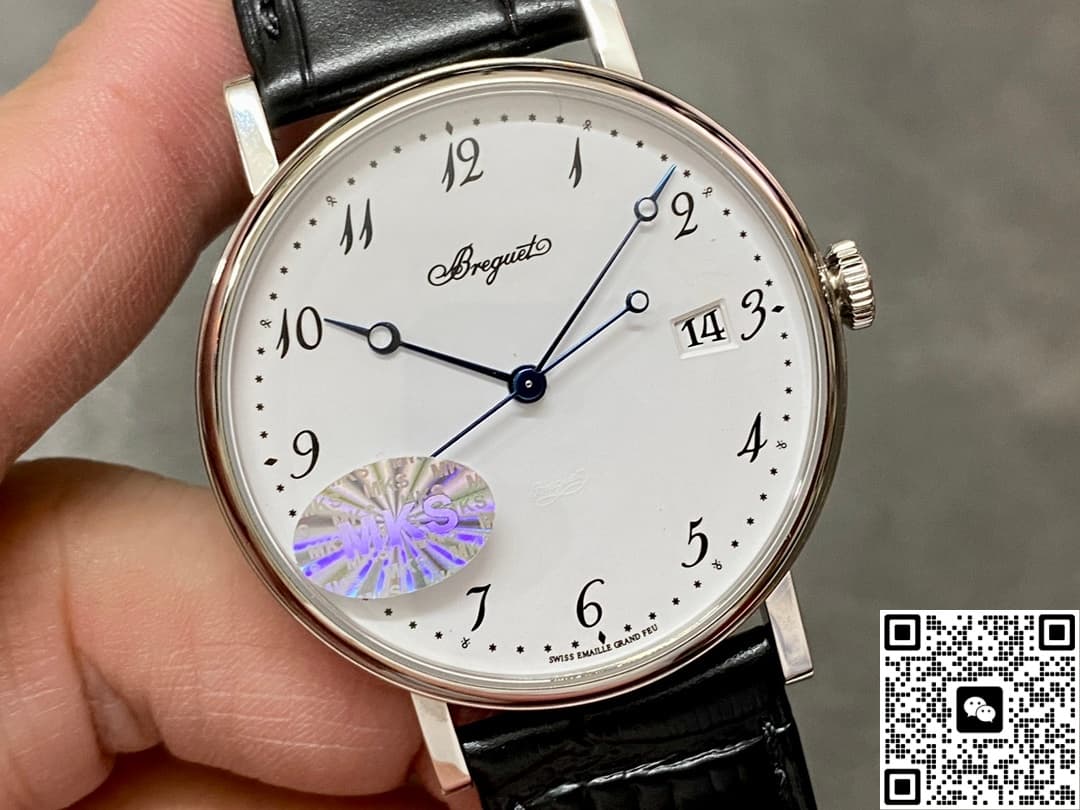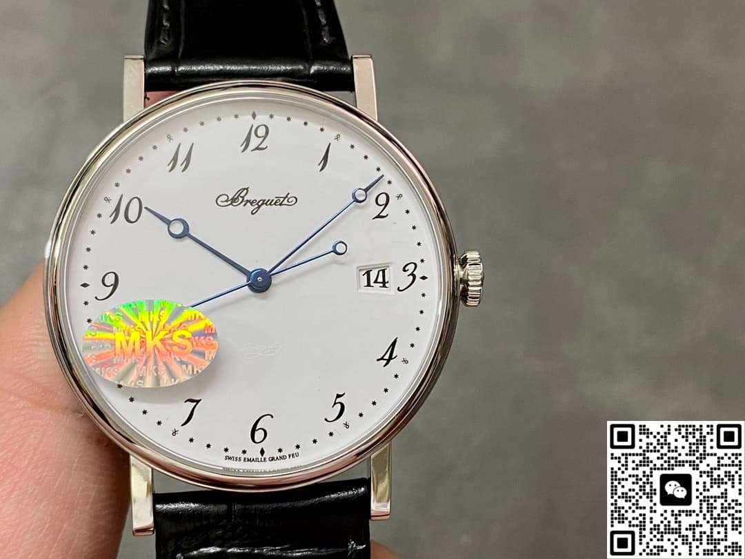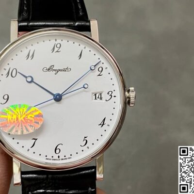 Today, let’s talk about the MKS factory’s replica watch of the Breguet Classique 5177BB-29-9v6. The overall design of this watch is very simple and modern. The pure white dial looks clean and high-end, and it gives off a really nice vibe on the wrist. It’s easy to match with different styles, whether you’re going to work or out on a casual date—super versatile. The black leather strap creates a strong contrast with the dial color, making it stand out on the wrist. That bold visual contrast keeps it looking both minimal and premium. Below, I’ll go into more detail from a few different angles!