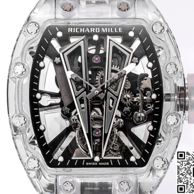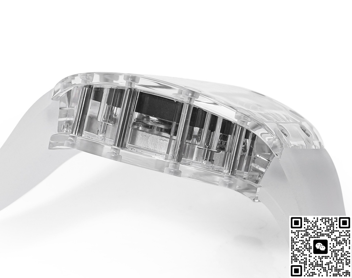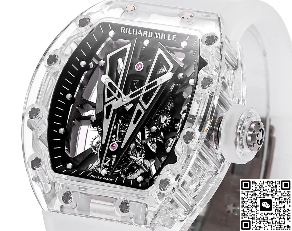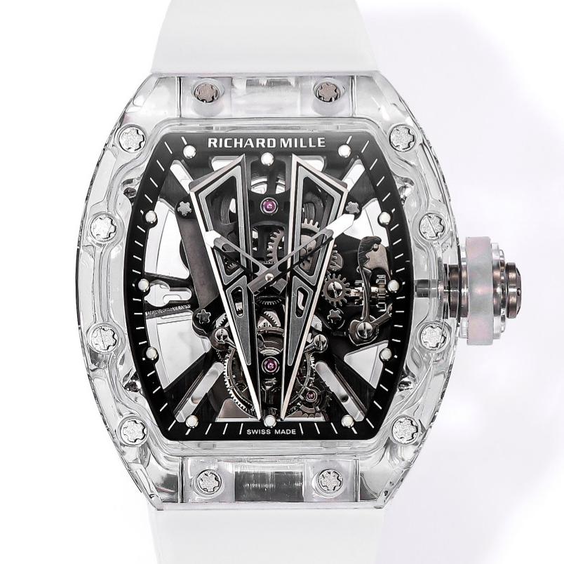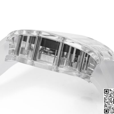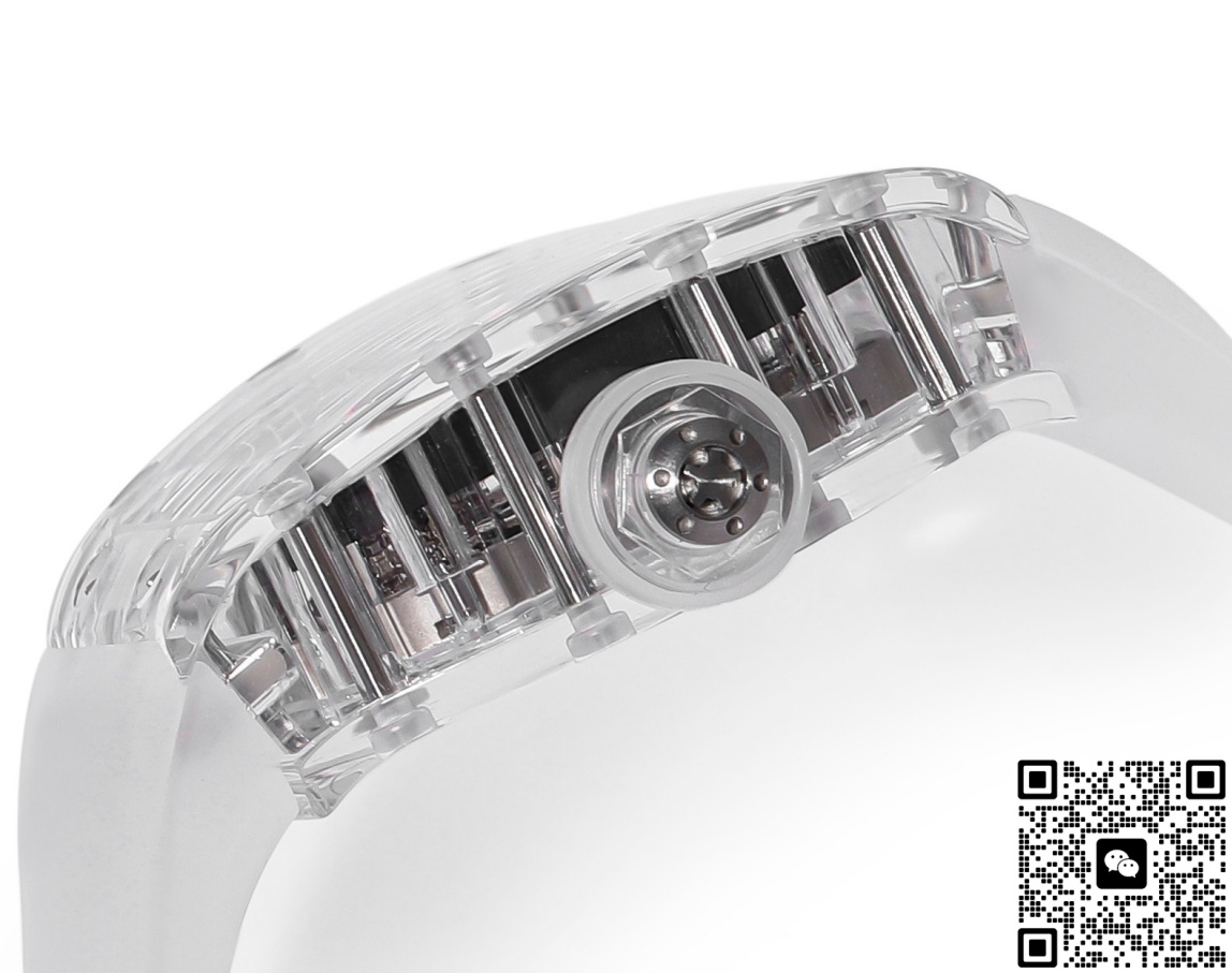 Today, let’s talk about this Richard Mille RM27-03 replica watch from MS Factory. The design of the watch looks very cool. The skeleton dial gives it a full mechanical style. This watch does a great job recreating the bull’s head bridge design on the skeleton dial—it looks super bold and full of power. The fully transparent case shows off MS Factory’s excellent craftsmanship. You can clearly see how the movement works inside, which is really eye-catching. Let’s take a closer look.