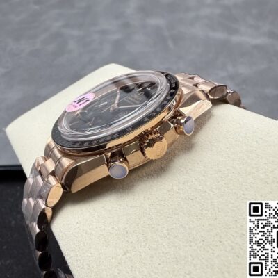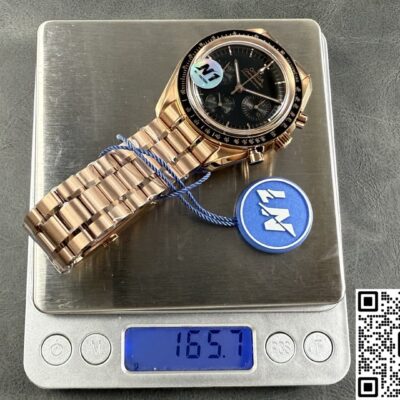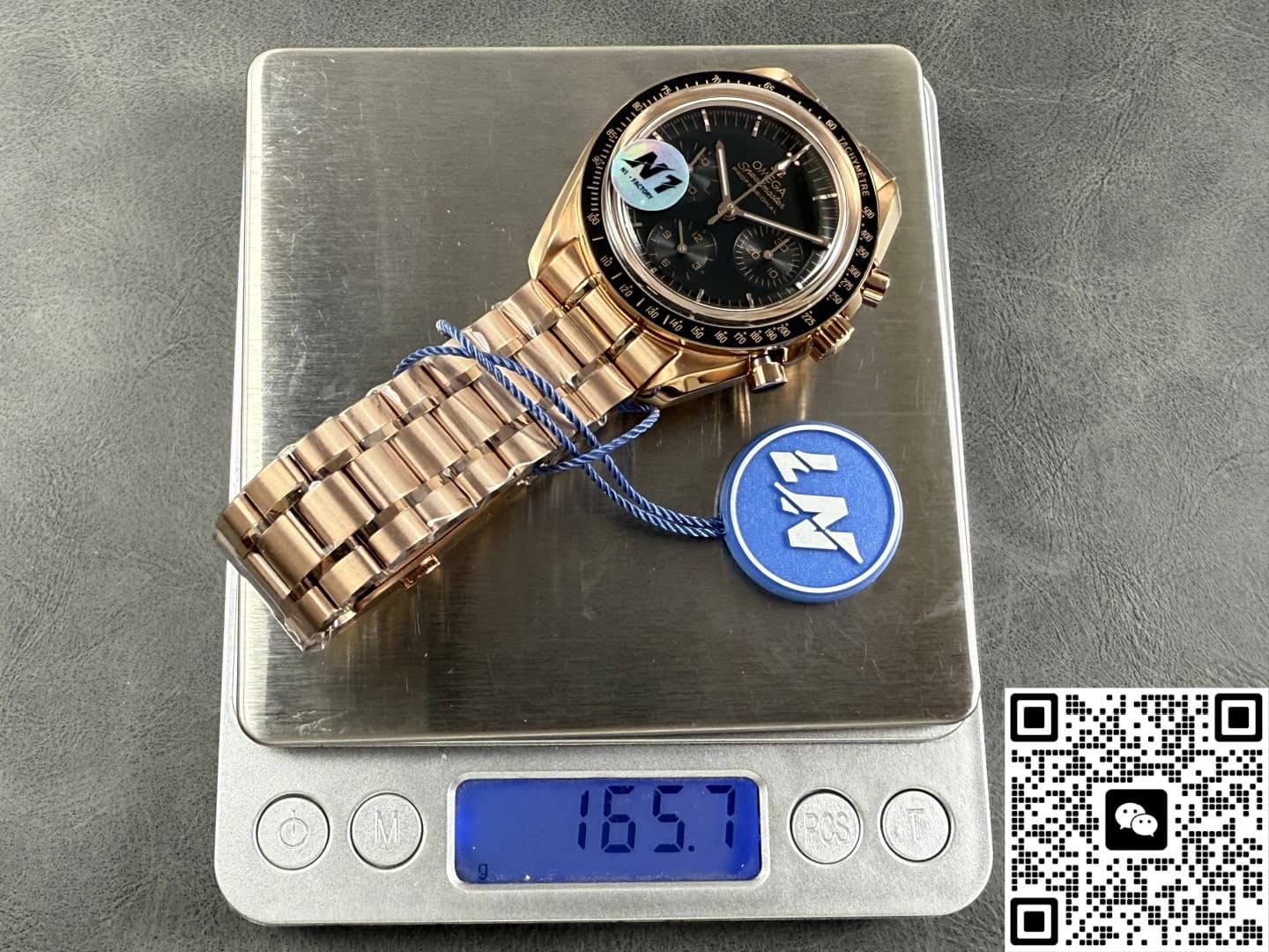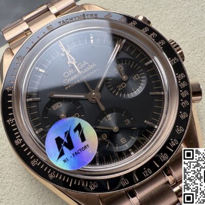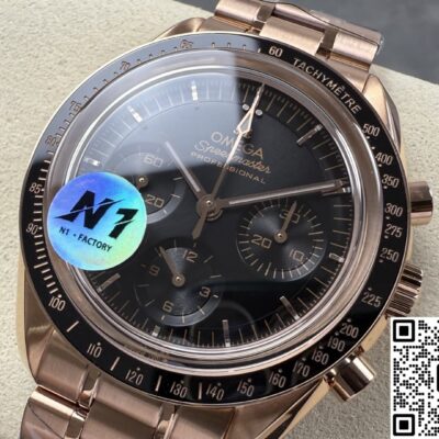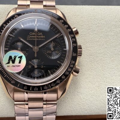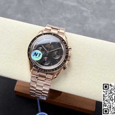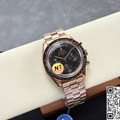 This Omega Speedmaster from the N1 factory is really popular among watch fans. The Omega Speedmaster series was born in 1957, made for racing, and it was also the first watch on the moon. It has great timing functions and is loved by adventurers and space enthusiasts. When I first saw it, I thought, no wonder so many people like it. Except for the black dial, the rest of the watch is gold. Black and gold is a classic combo. The mystery of black tones down the boldness of gold, and the shine of gold breaks the dullness of black. When these two colors come together, it feels high-end and luxurious. I personally really like this kind of pairing. Today, let’s see how this replica watch looks overall.