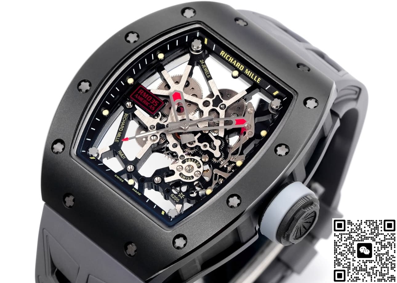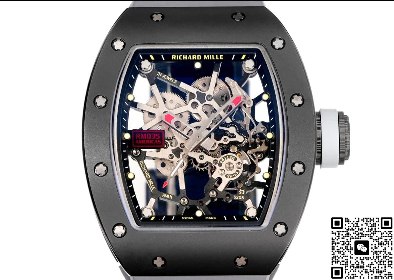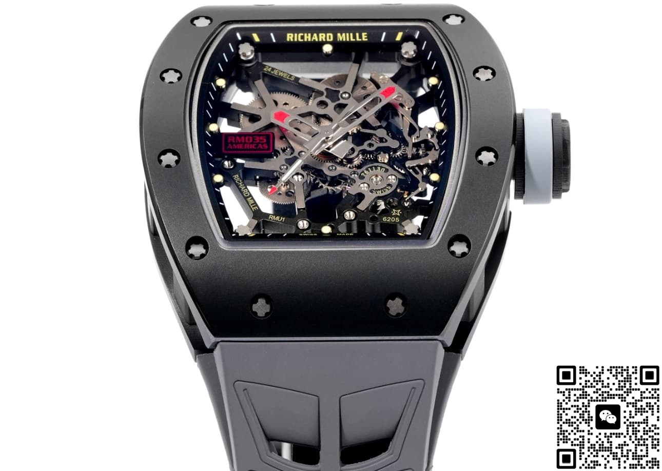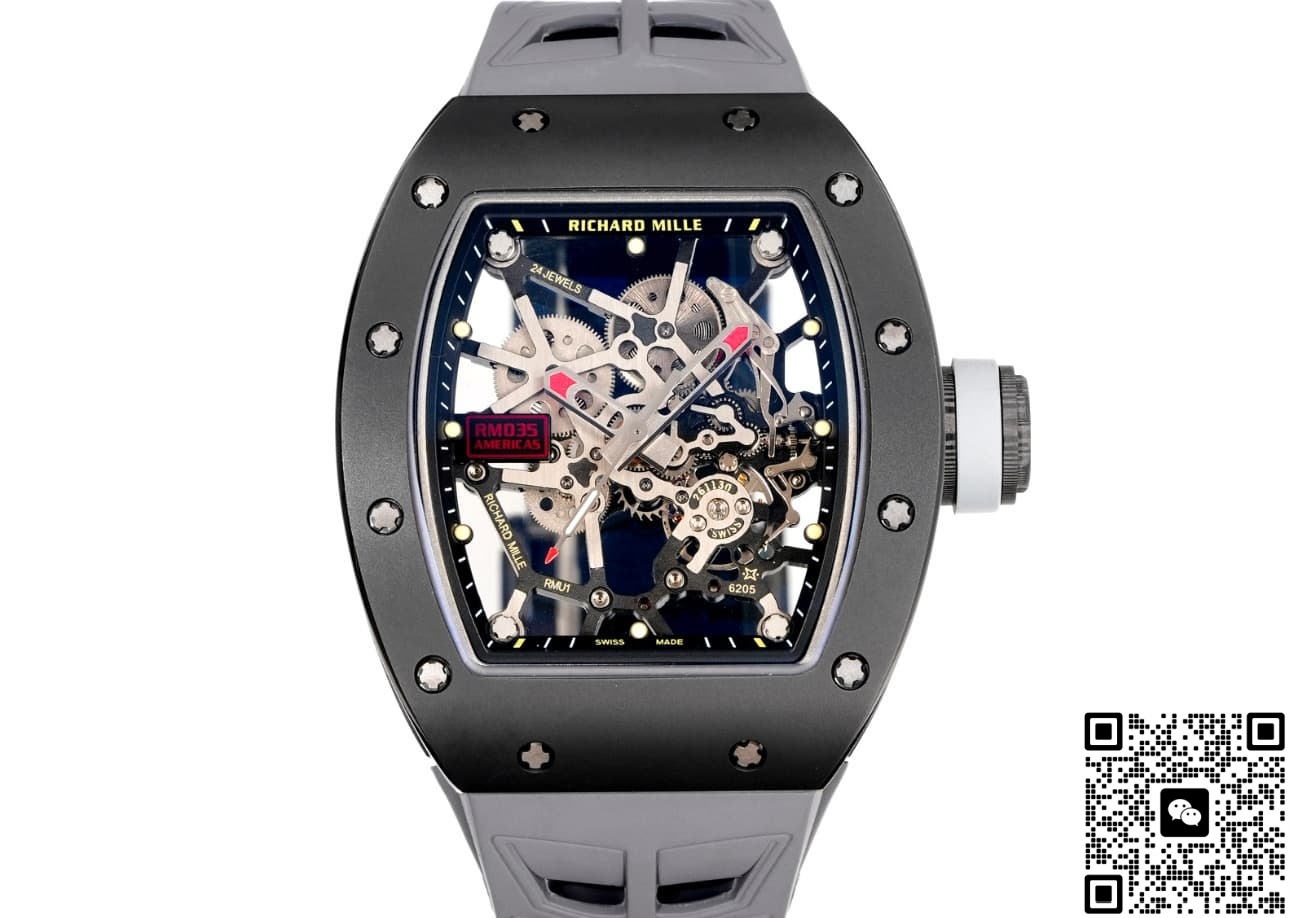 NEW Factory Richard Mille RM035 Grey Rubber Strap Replica watch For Sale, it is a watch made by replicating the various parts of the genuine watch according to 1:1 mold opening, that is, a replica watch. Its design, materials, and workmanship will strictly imitate the authentic manufacturing. This kind of watch has many advantages such as high simulation degree, fine workmanship and stable performance. Most replica watches can also achieve all the functions of the original watch, which is why many replica watches can be exported overseas. If you are looking to buy a high imitation watch, then this NEW Factory Replica Richard Mille RM035 Grey Rubber Strap is a very good choice.
