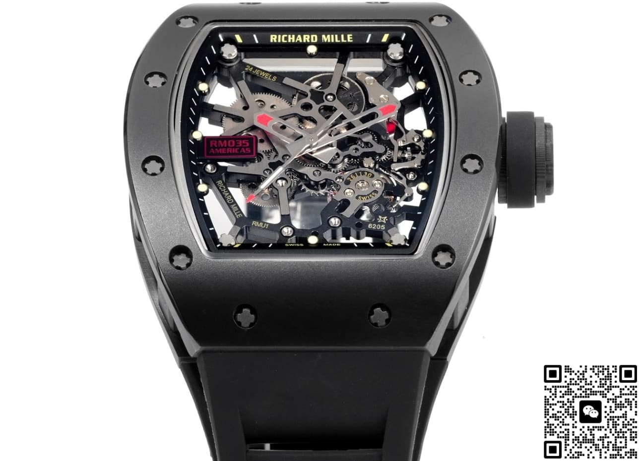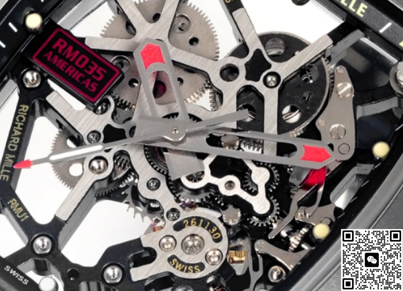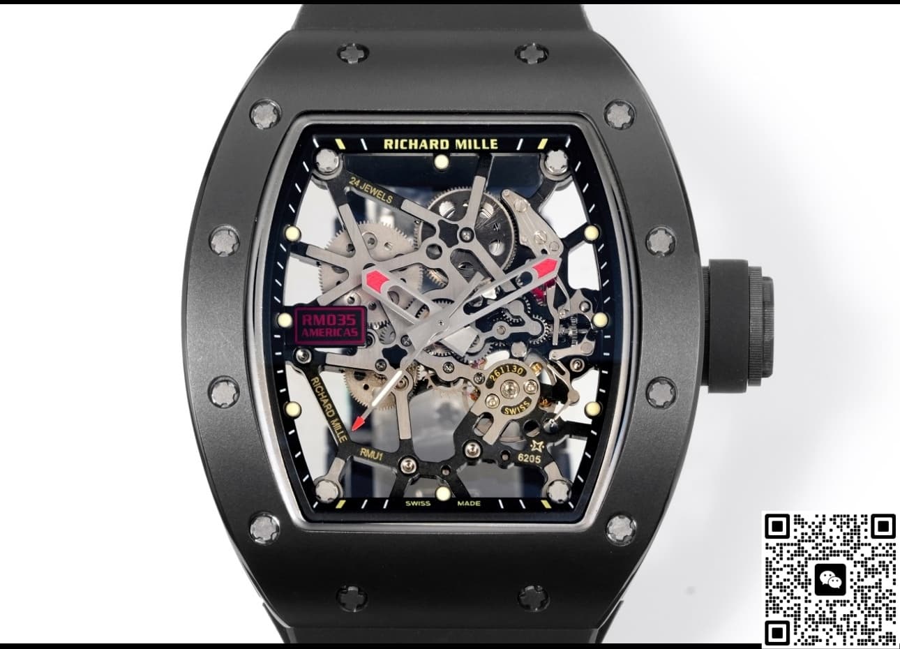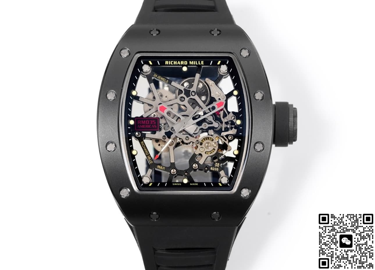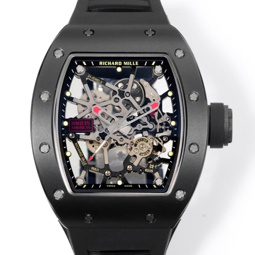 NEW Factory Richard Mille RM035 Rubber Strap Replica watch For Sale, it is a watch made by replicating the various parts of the genuine watch according to 1:1 mold opening, that is, a replica watch. Its design, materials, and workmanship will strictly imitate the authentic manufacturing. This kind of watch has many advantages such as high simulation degree, fine workmanship and stable performance. Most replica watches can also achieve all the functions of the original watch, which is why many replica watches can be exported overseas. If you are looking to buy a high imitation watch, then this NEW Factory Replica Richard Mille RM035 Rubber Strap is a very good choice.