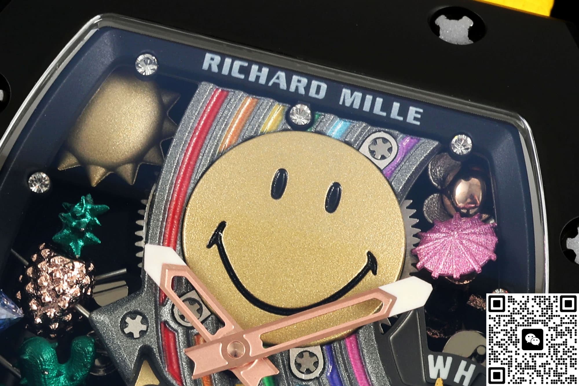 - Replica Richard Mille RM67-01 automatic winding watch has delicate size and wine barrel shape case, and not only has the best classic modelling, but also is slim and moderate. The numeral time markers especially made of solid metal, contrast with exquisite hollowing movement to set off the watch being deep and complex. The Richard Mille RM67-01 watch is slim, simple and light, deep, complex and overlap, that is become the perfect choice which can compare to genuine.The size of the case is 38.7 mm x 47.5 mm , and the thickness is 13mm. The Richard MIlle RM67-01 adopt superior rubber strap which is superstrong waterproof and anticorrosion, and this kind of strap is a necessary strap for you to wear in summer.