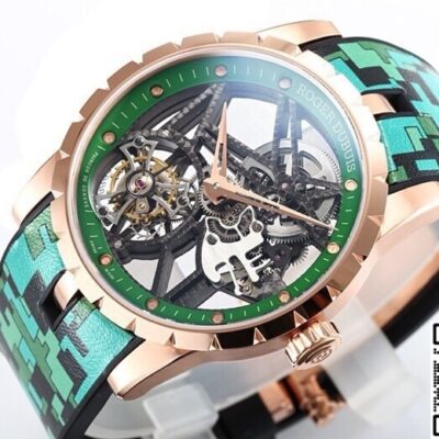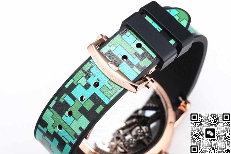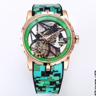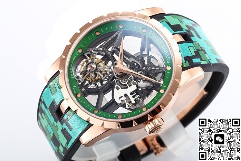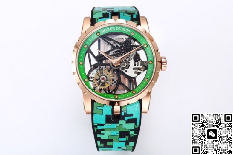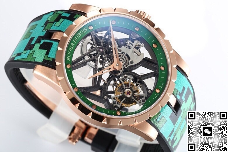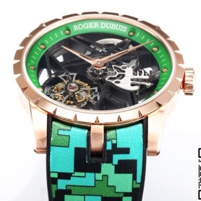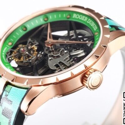 This high-quality Roger Dubuis replica watch uses a titanium base for the case, which then goes into a vacuum chamber for rose gold plating. This method is more stable than traditional water plating. Under daylight, it shows a copper-pink tone, not that cheap reddish copper shine.