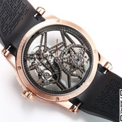 The whole watch is water-resistant to 30 meters. If you get caught in sudden rain, you don’t need to rush to take it off. The rubber strap won’t get damaged by sweat or acids. For business trips or travel, this one strap can handle everything. The original Roger Dubuis entry price is still too high for most people. But NEW Factory packed the same skeleton design, star bridge, and flying tourbillon into a 1:1 rose gold case—and kept the price down to just over five hundred dollars. If someone told you before that you could get a real working tourbillon watch for just $500, you’d never believe it. But now, with NEW Factory’s mature replication tech, it’s totally trustworthy. If you like high value-for-money replica watches, choosing this one is definitely not wrong.