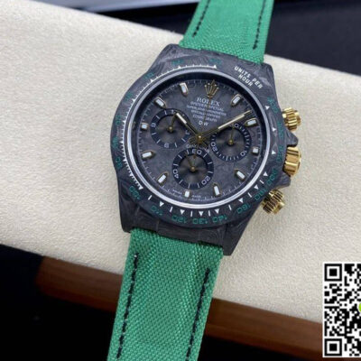 What is a replica watch? To put it simply, it is a watch made by replicating the various parts of the genuine watch according to 1:1 mold opening, that is, a replica watch. Its design, materials, and workmanship will strictly imitate the authentic manufacturing. This kind of watch has many advantages such as high simulation degree, fine workmanship and stable performance. Most replica watches can also achieve all the functions of the original watch, which is why many replica watches can be exported overseas. If you are looking to buy a high imitation watch, then this Noob Factory Rolex Daytona Cosmograph Green Strap is a very good choice.