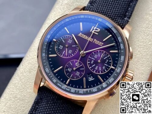 OMF Factory Audemars Piguet CODE 11.59 26393OR.OO.A002KB.02 Smoky Purple Dial Replica watch For Sale, it is a watch made by replicating the various parts of the genuine watch according to 1:1 mold opening, that is, a replica watch. Its design, materials, and workmanship will strictly imitate the authentic manufacturing. This kind of watch has many advantages such as high simulation degree, fine workmanship and stable performance. Most replica watches can also achieve all the functions of the original watch, which is why many replica watches can be exported overseas. If you are looking to buy a high imitation watch, then this OMF Factory Replica Audemars Piguet CODE 11.59 26393OR.OO.A002KB.02 Smoky Purple Dial is a very good choice.