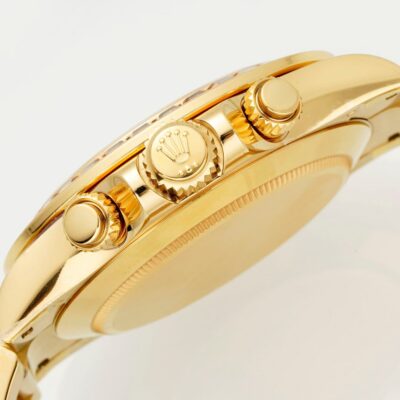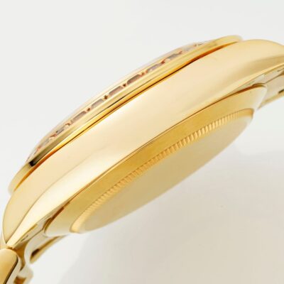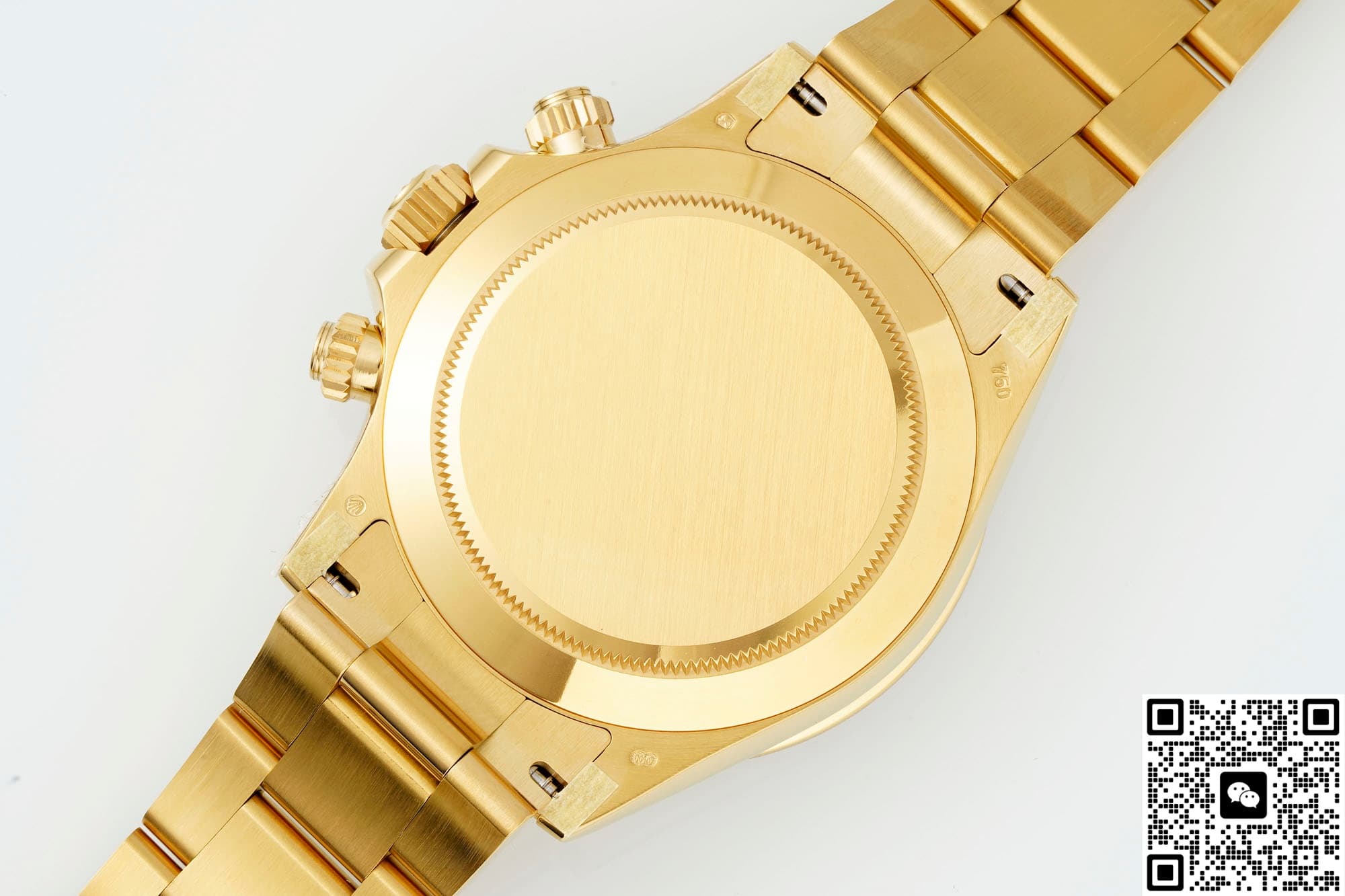 The bracelet of this PPM Daytona is made from 904L stainless steel. Compared to 316L steel, it has better resistance to oxidation and corrosion, so it’s less likely to rust or change color. It’s also harder than 316L, so everyday bumps or scratches won’t really leave marks. It uses PVD gold plating to achieve the same look as the original. After fine polishing and brushing, the surface has a smooth, soft shine and feels solid to the touch.