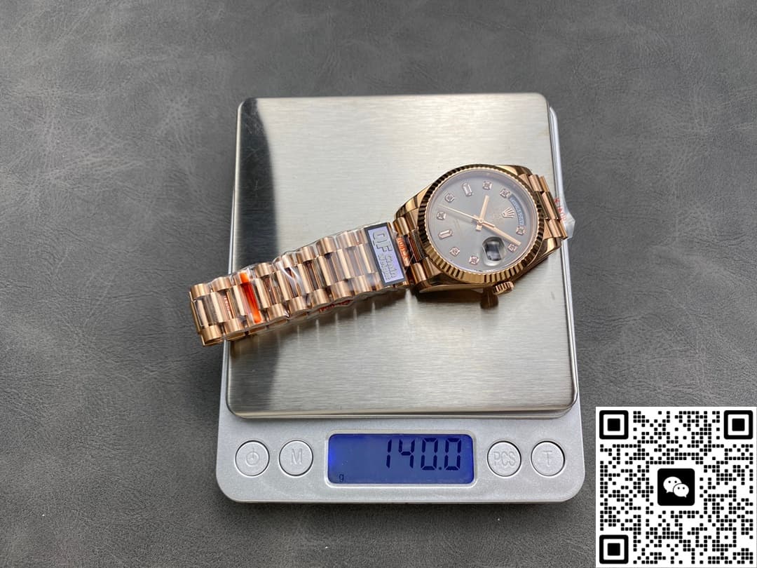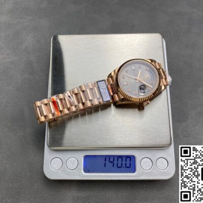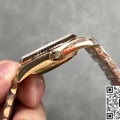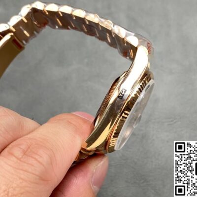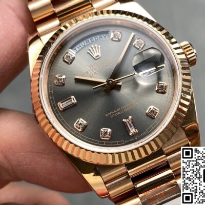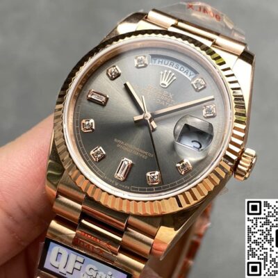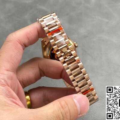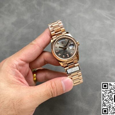 What’s it like to wear rose gold on your wrist? The answer usually has little to do with price, and everything to do with the vibe. The QF Factory Rolex Day-Date m128235-0050 replica watch pretty much sets the bar in its price range when it comes to that vibe. It packs the glow of precious metal, the sparkle of diamonds, the magnified effect of the cyclops lens, and the smoothness of the President bracelet—all into a 36mm case. For fans of the Rolex Day-Date style, it means you can get the same look and feel without paying even 10% of the genuine price.