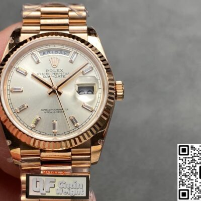 QF Factory Rolex Day Date m128235-0087 Replica watch For Sale, it is a watch made by replicating the various parts of the genuine watch according to 1:1 mold opening, that is, a replica watch. Its design, materials, and workmanship will strictly imitate the authentic manufacturing. This kind of watch has many advantages such as high simulation degree, fine workmanship and stable performance. Most replica watches can also achieve all the functions of the original watch, which is why many replica watches can be exported overseas. If you are looking to buy a high imitation watch, then this QF Factory Replica Rolex Day Date m128235-0087 is a very good choice.
