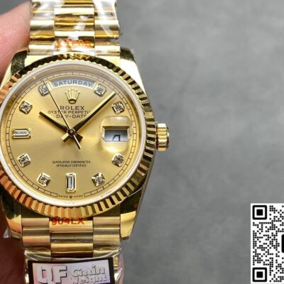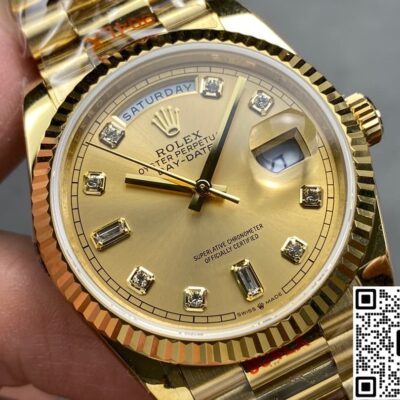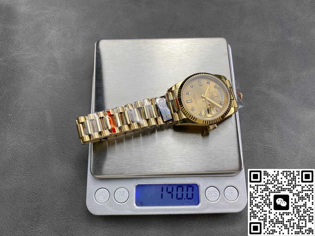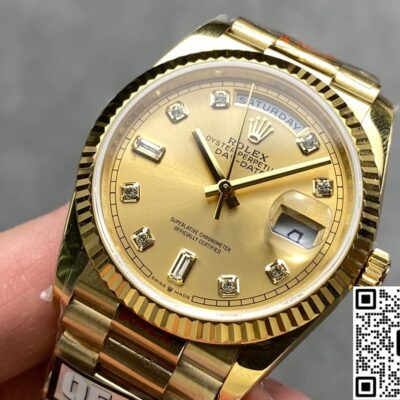 QF Factory Rolex Day Date m128238-0008 Replica watch For Sale, it is a watch made by replicating the various parts of the genuine watch according to 1:1 mold opening, that is, a replica watch. Its design, materials, and workmanship will strictly imitate the authentic manufacturing. This kind of watch has many advantages such as high simulation degree, fine workmanship and stable performance. Most replica watches can also achieve all the functions of the original watch, which is why many replica watches can be exported overseas. If you are looking to buy a high imitation watch, then this QF Factory Replica Rolex Day Date m128238-0008 is a very good choice.