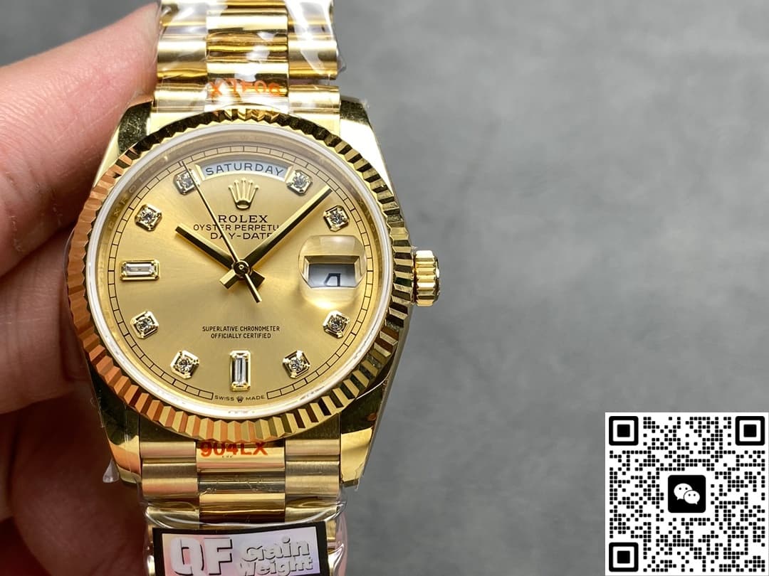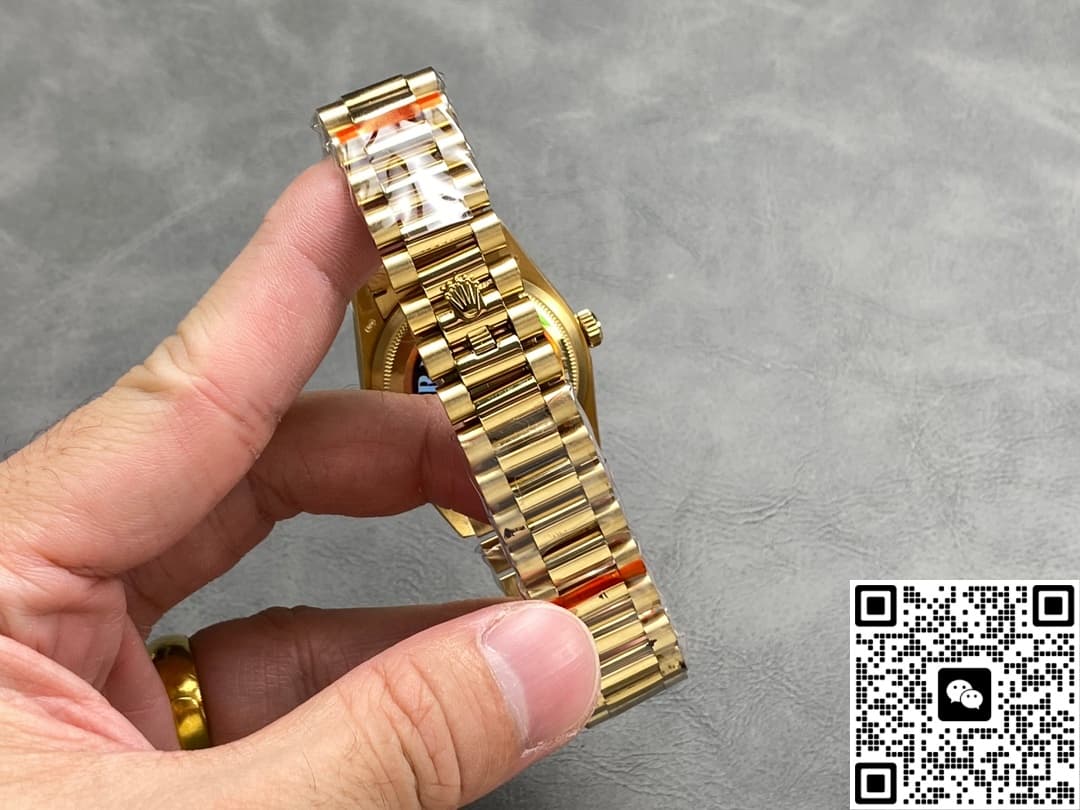 QF Factory Rolex Day Date m128238-0008 Replica watch For Sale, it is a watch made by replicating the various parts of the genuine watch according to 1:1 mold opening, that is, a replica watch. Its design, materials, and workmanship will strictly imitate the authentic manufacturing. This kind of watch has many advantages such as high simulation degree, fine workmanship and stable performance. Most replica watches can also achieve all the functions of the original watch, which is why many replica watches can be exported overseas. If you are looking to buy a high imitation watch, then this QF Factory Replica Rolex Day Date m128238-0008 is a very good choice.
