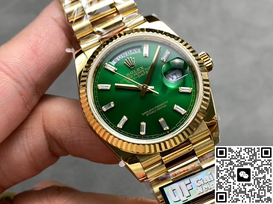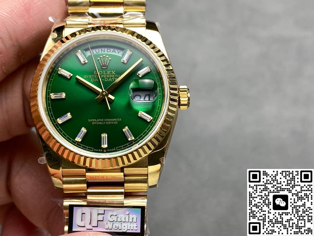QF Factory Rolex Day Date m128238-0130 Replica watch For Sale, it is a watch made by replicating the various parts of the genuine watch according to 1:1 mold opening, that is, a replica watch. Its design, materials, and workmanship will strictly imitate the authentic manufacturing. This kind of watch has many advantages such as high simulation degree, fine workmanship and stable performance. Most replica watches can also achieve all the functions of the original watch, which is why many replica watches can be exported overseas. If you are looking to buy a high imitation watch, then this QF Factory Replica Rolex Day Date m128238-0130 is a very good choice.