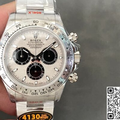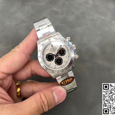 The QF factory Rolex Daytona replica watch uses a 4130 integrated movement. They’ve managed to keep the thickness down to just 6.5mm—that’s 1.8mm thinner than the traditional modified 7750 setup. So the side profile finally matches the genuine watch. What’s more important is the inside: a column wheel handles the chronograph functions, and a vertical clutch reduces the chrono seconds hand shake so much you can’t even see it. It has twin barrels in parallel, so even if you fully wind it and let it sit for three days, it’ll still be running. You don’t have to worry if you don’t wear it over the weekend. It uses a KIF triangular shock absorber and a blued steel hairspring, so it performs well against magnetism and temperature changes. The average daily error is around ±5 seconds. In other words, as long as you don’t keep pressing the chrono buttons like it’s a stopwatch, it’ll pretty much never give you any trouble in daily wear.
