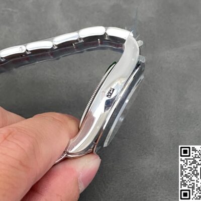 Look away from the dial, and the 904L steel case shines with a cold, white glow thanks to the mix of polished and brushed finishing. QF factory also uses 904L for the bezel. Its cool white tone matches perfectly with the silver-gray meteorite dial, so the whole color scheme is really harmonious. The crystal is made of double-sided anti-reflective sapphire, and it’s super clear. Whether you’re under direct sunlight on the street or in a dimly lit restaurant, you can read the time easily. If you’re looking for a high-quality Rolex replica, this QF factory meteorite version is definitely worth considering.