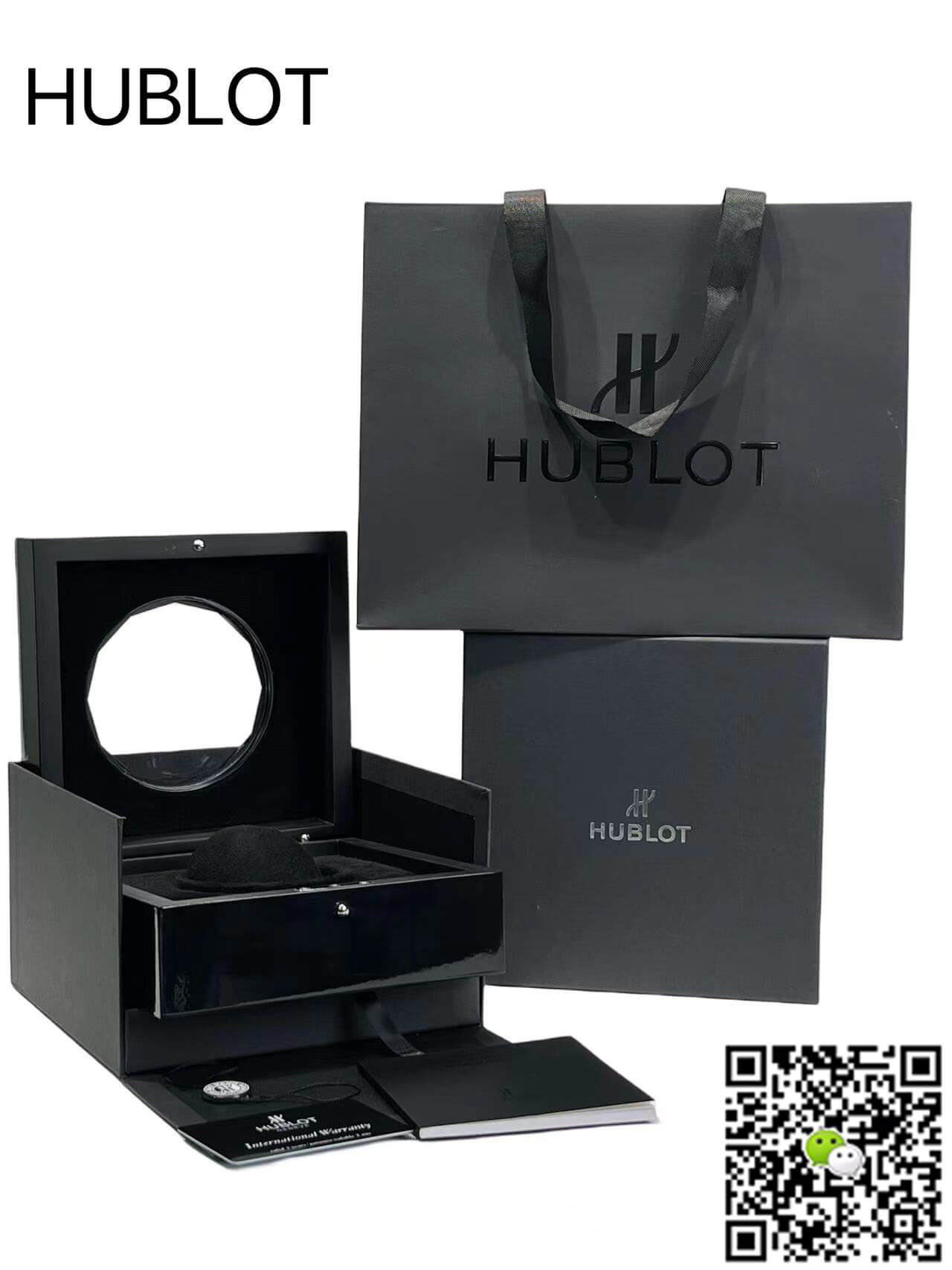 The watch box contains a full set of packaging such as warranty card, tag, manual, handbag, etc. Watch packaging boxes are produced by a special box factory, if you need Replica Hublot Box, you can place an order on the website to buy.