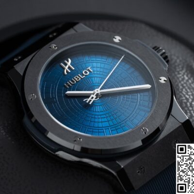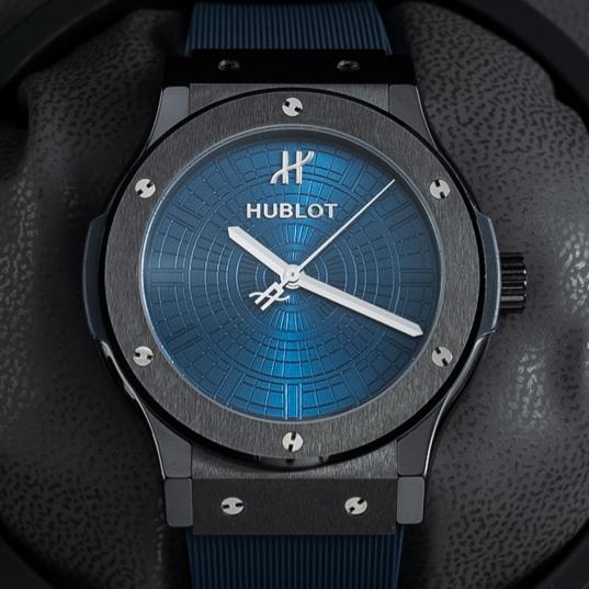 Another feature of a glass dome is how the sky gets framed into a circle. This Hublot Pisa 1940 top-tier replica sinks the edge of the front crystal by 0.2mm, making it flush with the inner wall of the ceramic bezel. The caseback crystal is treated like a dial, turning the movement’s rotor into another dome. When you flip the watch over, the glint from the spinning rotor overlaps with the reflections on the deep blue front dial, completing a closed loop of that architectural perspective right on your wrist. The deep blue itself carries the metaphor of “Milan Blue” – deeper than navy, warmer than ink blue. To match this color, the replica factory added 5% purple-copper powder to the final lacquer layer. This makes the deep blue show a very faint purple-gray under tungsten light, and a dark green hue under LED lights.