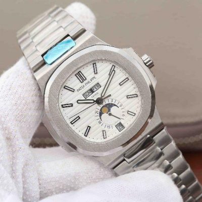 We sell the best Replica Patek Philippe Nautilus Annual Calendar Moonphase 5726/1A-010 KM Factory White Dial fake watches, this is KM Factory by purchasing original replica Patek Philippe Nautilus series watches. If you are interested in wholesale replica Patek Philippe watches, you can contact our online customer service and give the lowest wholesale price according to the quantity you need.