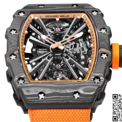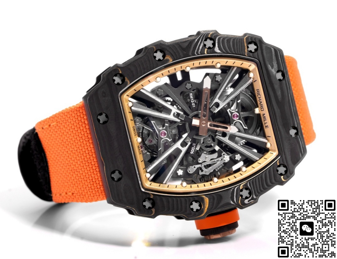 Richard Mille Tourbillon RM12-01 Carbon Fiber Case Replica watch For Sale, it is a watch made by replicating the various parts of the genuine watch according to 1:1 mold opening, that is, a replica watch. Its design, materials, and workmanship will strictly imitate the authentic manufacturing. This kind of watch has many advantages such as high simulation degree, fine workmanship and stable performance. Most replica watches can also achieve all the functions of the original watch, which is why many replica watches can be exported overseas. If you are looking to buy a high imitation watch, then this Replica Richard Mille Tourbillon RM12-01 Carbon Fiber Case is a very good choice.