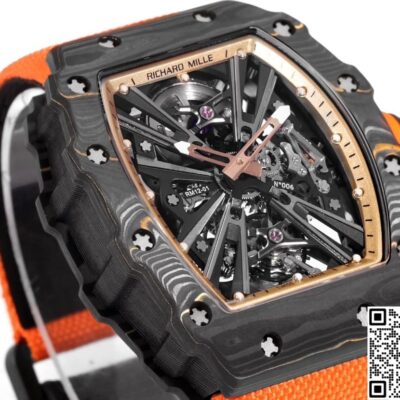 - Replica Richard Mille RM67-01 automatic winding watch has delicate size and wine barrel shape case, and not only has the best classic modelling, but also is slim and moderate. The numeral time markers especially made of solid metal, contrast with exquisite hollowing movement to set off the watch being deep and complex. The Richard Mille RM67-01 watch is slim, simple and light, deep, complex and overlap, that is become the perfect choice which can compare to genuine.The size of the case is 38.7 mm x 47.5 mm , and the thickness is 13mm. The Richard MIlle RM67-01 adopt superior rubber strap which is superstrong waterproof and anticorrosion, and this kind of strap is a necessary strap for you to wear in summer.